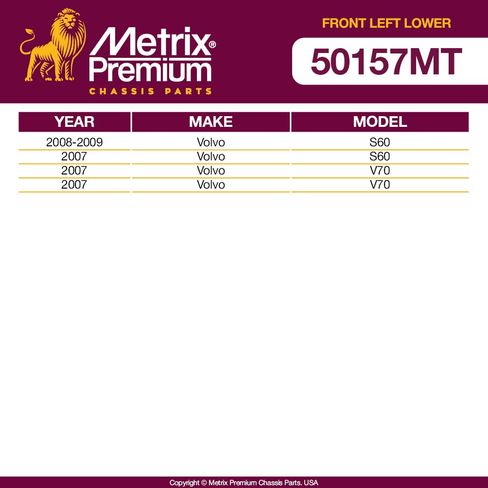 Metrix Premium Chassis Parts - Front Left Lower Control Arm Fits 2008-2009 Volvo S60, 2007 Volvo S60, 2007 Volvo V70, Replacemen