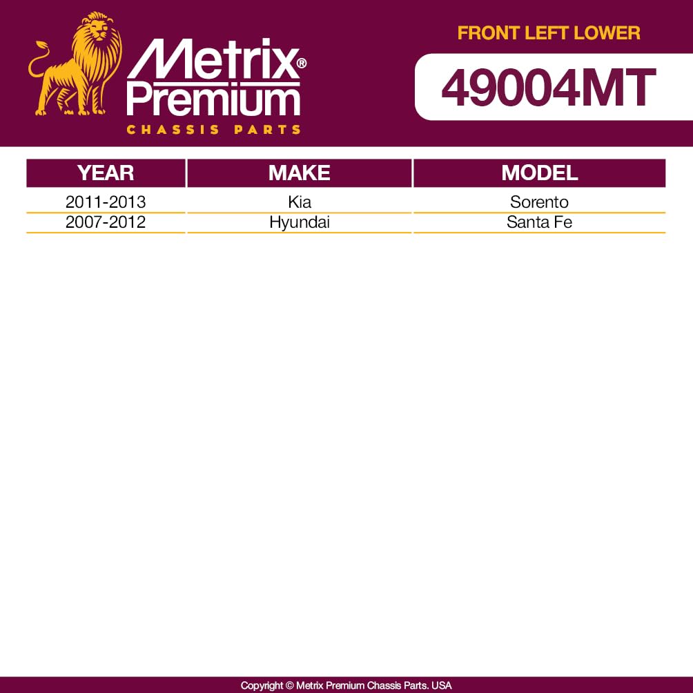 Metrix Premium Chassis Parts - Front Left Lower Control Arm W Ball Joint & Bushing Assembly Fits 2011-2013 Kia Sorento, 2007-201
