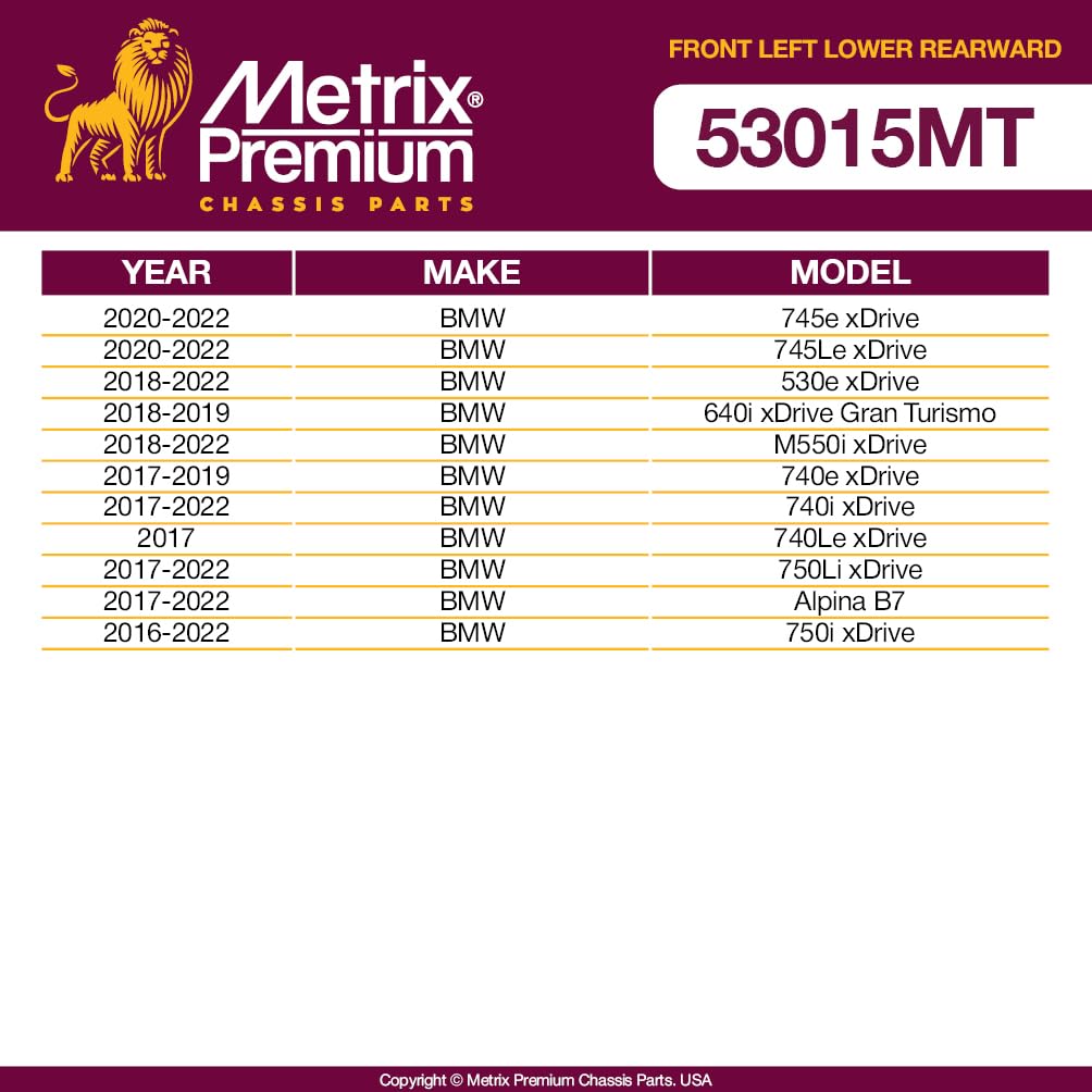 Metrix Premium Chassis Parts - Front Left Lower Rearward Control Arm Fits 20-22 Bmw 745E Xdrive, 745Le Xdrive, 18-22 530E Xdrive