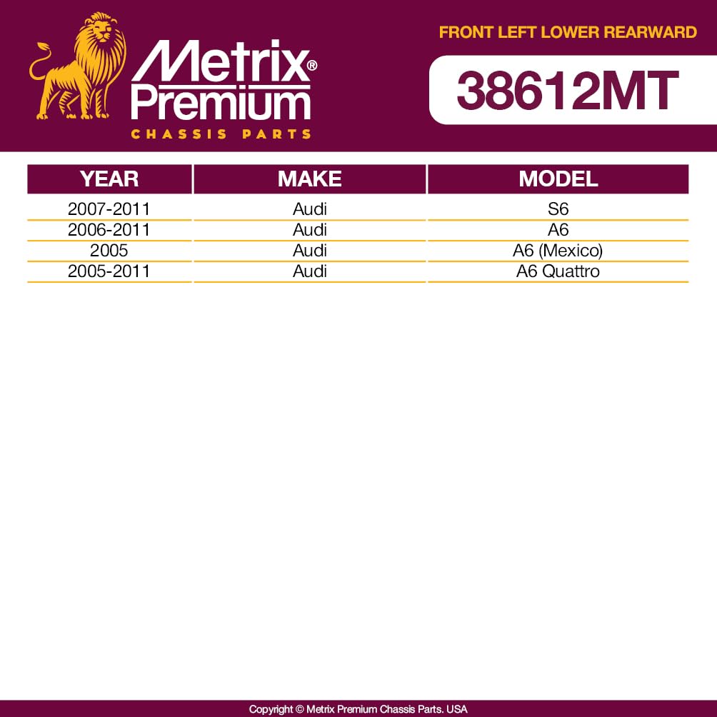 Metrix Premium Chassis Parts - Front Left Lower Rearward Control Arm W Ball Joint & Bushing Assembly Fits 07-11 Audi S6, 06-11 A