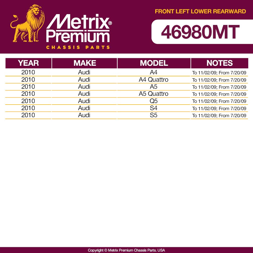 Metrix Premium Chassis Parts - Front Left Lower Rearward Control Arm W Ball Joint & Bushing Assembly Fits 2010 Audi A4, A4 Quatt