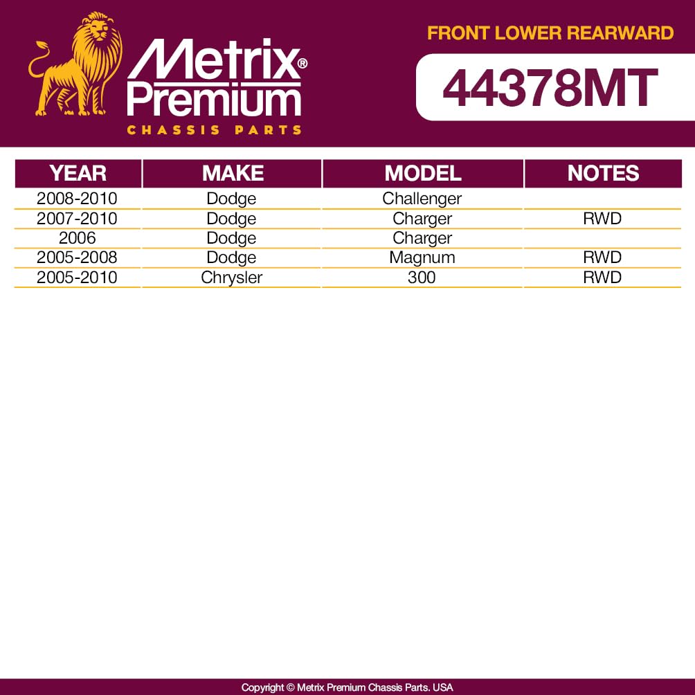 Metrix Premium Chassis Parts - Front Lower Rearward Control Arm Fits 08-10 Dodge Challenger, 07-10 Charger Rwd, 06 Charger, 05-0
