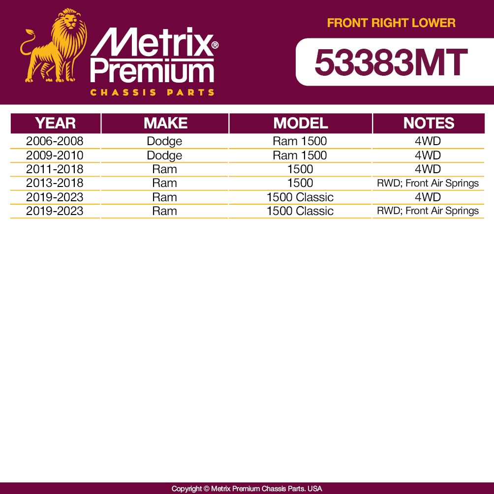 Metrix Premium Chassis Parts - Front Right Lower Control Arm W Ball Joint & Bushing Assembly Fits 06-10 Dodge Ram 1500 4Wd, 11-1