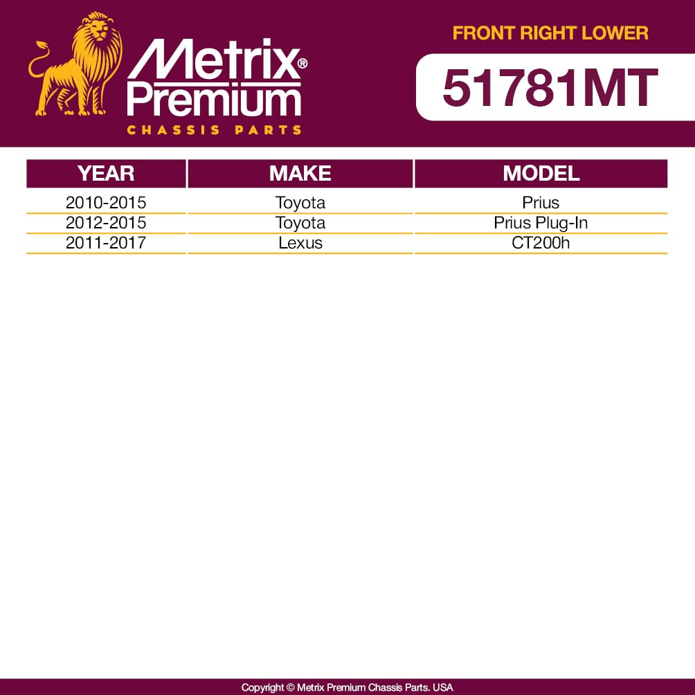 Metrix Premium Chassis Parts - Front Right Lower Control Arm W Ball Joint & Bushing Assembly Fits 10-15 Toyota Prius, 12-15 Priu