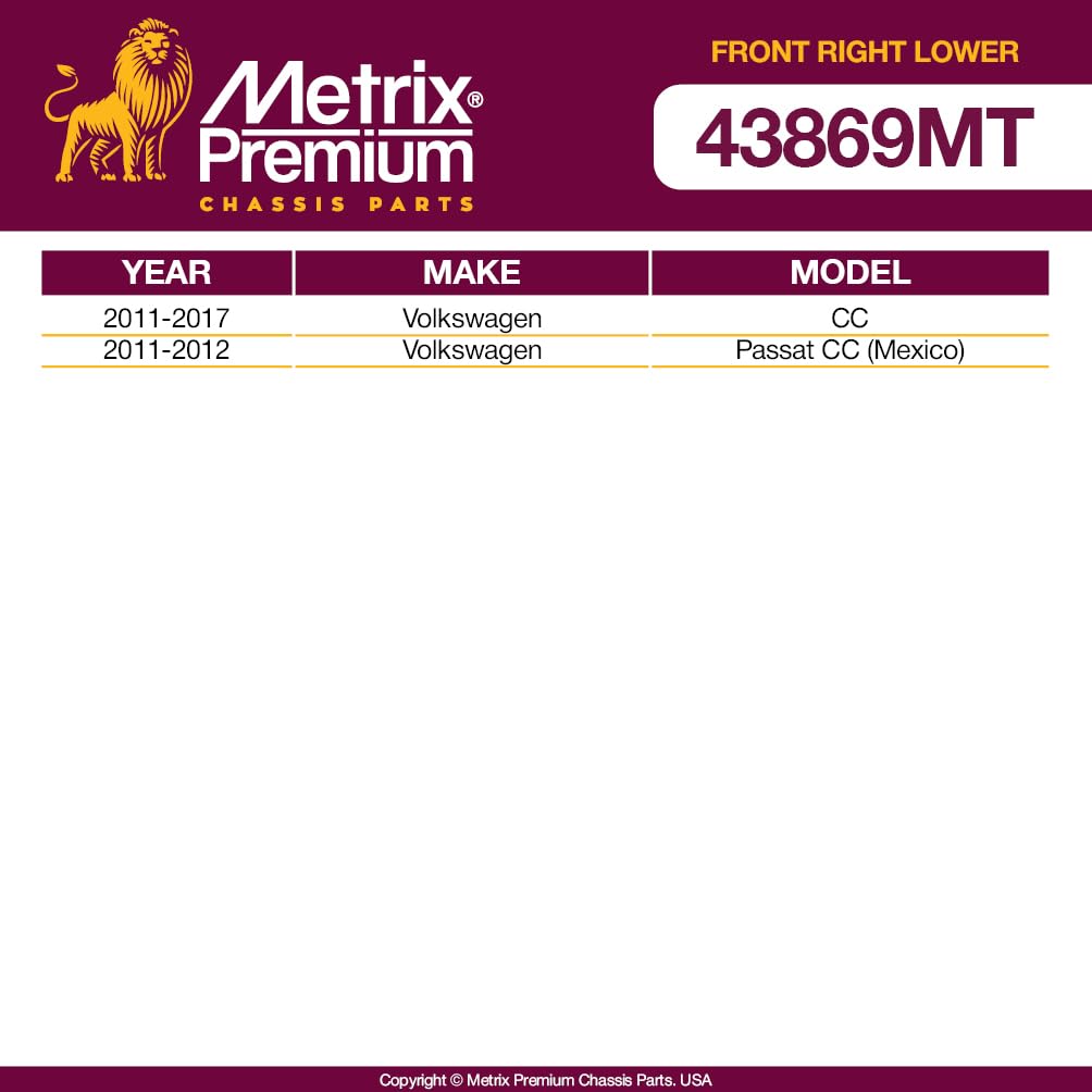 Metrix Premium Chassis Parts - Front Right Lower Control Arm W Ball Joint & Bushing Assembly Fits 2011-2017 Volkswagen Cc, 11-12