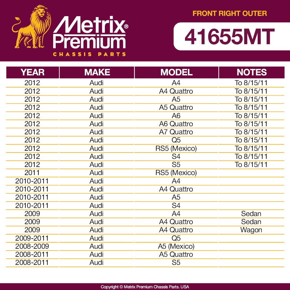 Metrix Premium Chassis Parts - Front Right Lower Forward Control Arm Fits 12 Audi A4, 12 A4 Quattro, 12 A5, 12 A5 Quattro, 12 A6