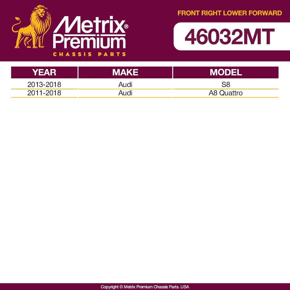 Metrix Premium Chassis Parts - Front Right Lower Forward Control Arm Fits 2013-2018 Audi S8, 2011-2018 Audi A8 Quattro, Replacem