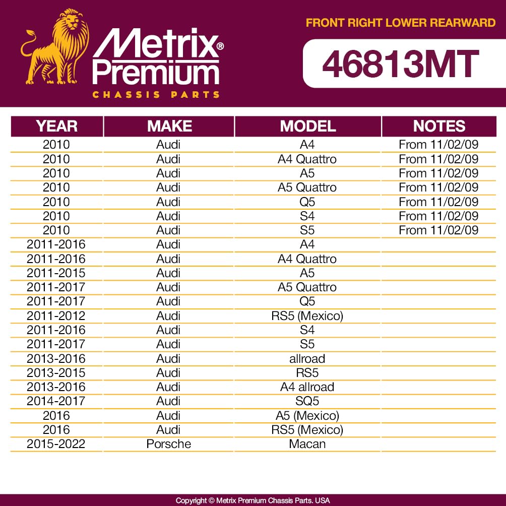Metrix Premium Chassis Parts - Front Right Lower Rearward Control Arm W Ball Joint & Bushing Assembly Fits 11-16 Audi A4, A4 Qua