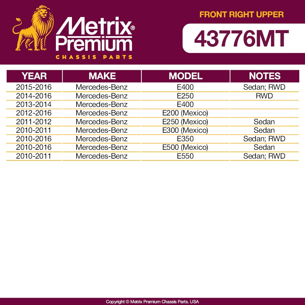 Metrix Premium Chassis Parts - Front Right Upper Control Arm W Ball Joint & Bushing Assembly Fits 15-16 Mercedes-Benz E400 Rwd,