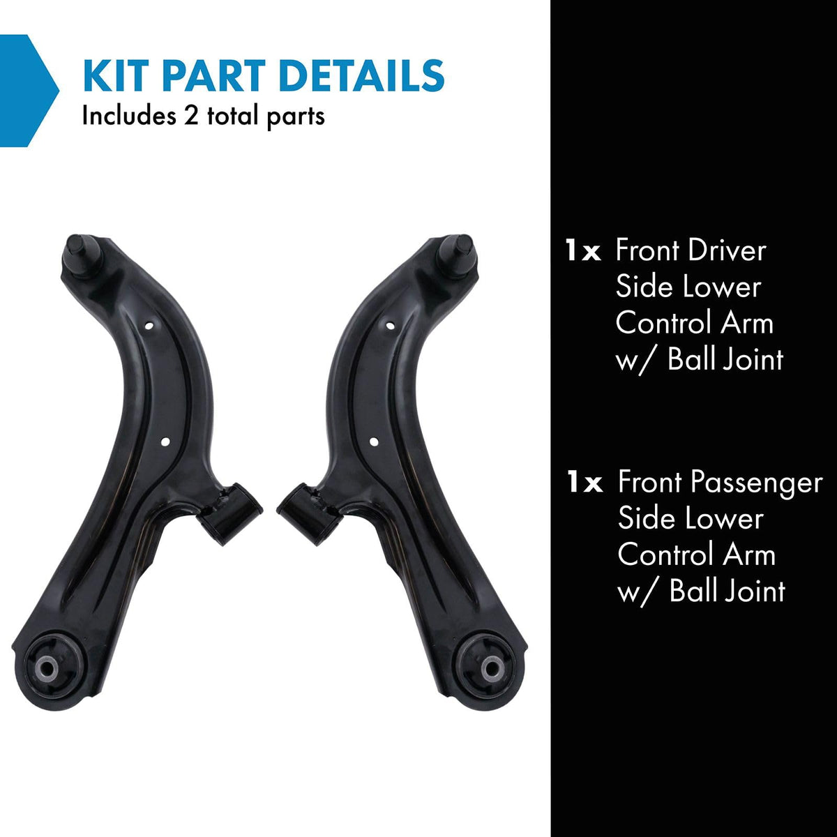 2 Piece Control Arm with Ball Joint SetKit Includes(1) Front Driver Side Lower Control Arm with Ball Joint(1) Front Passenger Side Lower Control Arm with Ball JointFitmentCompatible with: 2013-16 Nissan Sentra Front Driver & Passenger Side LowerCompatible with: 2017-19 Nissan Sentra SL Front Driver & Passenger Side LowerCompatible with: 2017-19 Nissan Sentra S Front Driver & Passenger Side LowerCompatible with: 2017-19 Nissan Sentra SV Front Driver & Passenger Side LowerCompatible with: 2017-19 Nissan Sentra SR Front Driver & Passenger Side LowerCompatible with: 2013-21 Nissan NV200 Front Driver & Passenger Side LowerCompatible with: 2015-18 Chevrolet City Express Front Driver & Passenger Side LowerProduct AttributesQuantity: 2 PieceReference NumbersDatsun/Nissan: 545003SH2A, 545003SH2B, 545009AM1A, 545013SH2A, 545019AM1ADIY Solutions: SUS04160, SUS06078, SUS06079Dorman - OE Solutions: 524-085, 524-086Dorman - Premium: CB69083PR, CB69084PRDorman: 524-085, 524-086Hollander: 512-59296R, 512-59297LMAS Industries: CB69083, CB69083PR, CB69084, CB69084PRMevotech: CMS301124, CMS301125, TXMS301124, TXMS301125MOOG Chassis Products: RK622159, RK622160NAPA Premium: 2608339, 2608340, TXMS301124, TXMS301125NAPA: 2606958, 2606959Nissan: 545003SH2A, 545009AM1A, 545013SH2A, 545019AM1ASYD: 1516060, 1516061