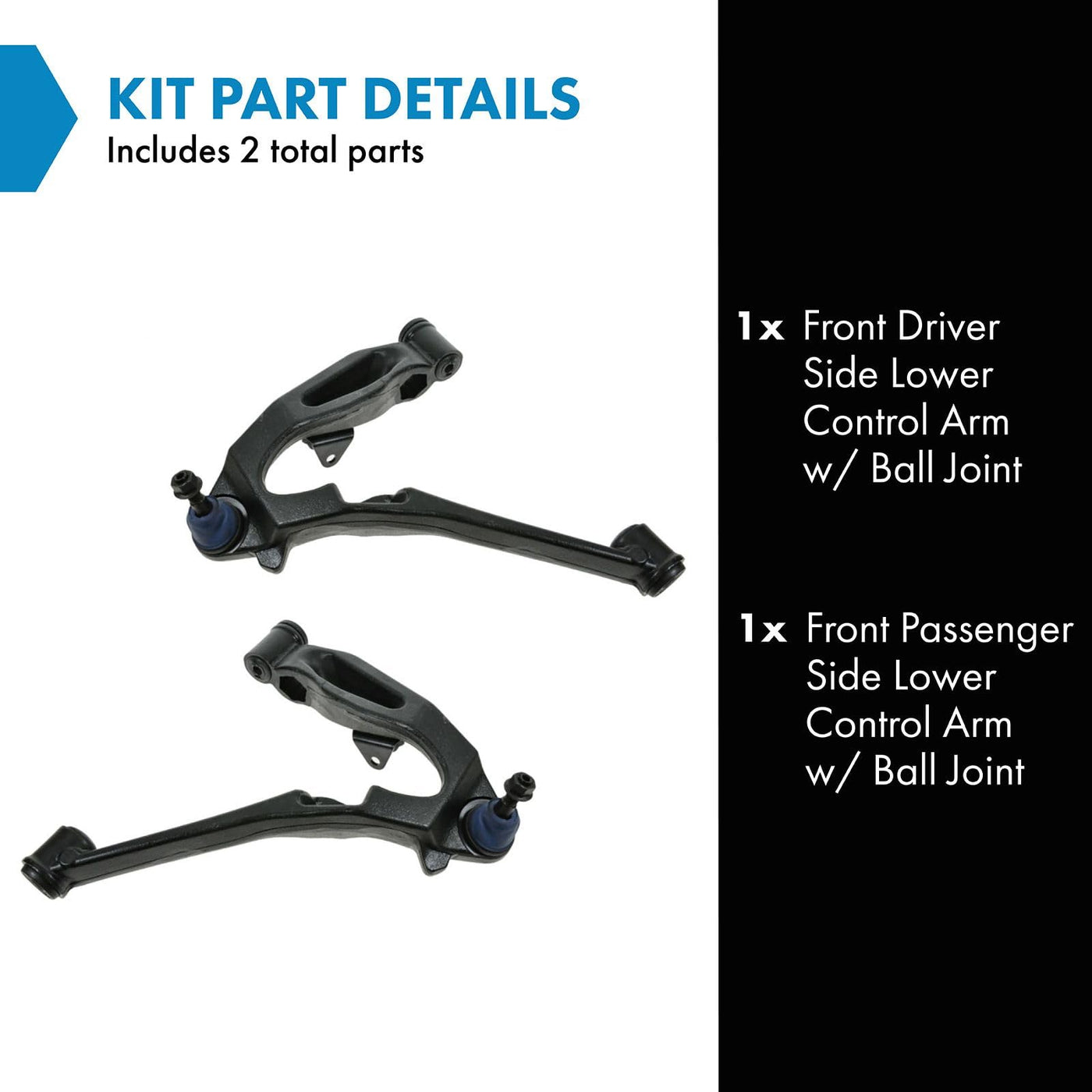 2 Piece Control Arm with Ball Joint SetKit Includes(1) Front Driver Side Lower Control Arm with Ball Joint(1) Front Passenger Side Lower Control Arm with Ball JointFitmentCompatible with: 2001-10 Chevrolet Silverado 2500 HD Front Driver & Passenger Side LowerCompatible with: 2001-10 GMC Sierra 2500 HD Front Driver & Passenger Side LowerCompatible with: 2004 Chevrolet Silverado 1500 Z71 Off-Road Crew Cab with 8 Lug Wheels Front Driver & Passenger Side LowerCompatible with: 2004 Chevrolet Silverado 1500 LS Crew Cab with 8 Lug Wheels Front Driver & Passenger Side LowerCompatible with: 2004 Chevrolet Silverado 1500 LT Crew Cab with 8 Lug Wheels Front Driver & Passenger Side LowerCompatible with: 2001-06 Chevrolet Silverado 3500 Front Driver & Passenger Side LowerCompatible with: 2004 GMC Sierra 1500 SLT Crew Cab with 8 Lug Wheels Front Driver & Passenger Side LowerCompatible with: 2004 GMC Sierra 1500 SLE Crew Cab with 8 Lug Wheels Front Driver & Passenger Side LowerCompatible with: 2003-09 Hummer H2 Front Driver & Passenger Side LowerCompatible with: 2007 Chevrolet Silverado 2500 HD Classic Front Driver & Passenger Side LowerCompatible with: 2007-10 Chevrolet Silverado 3500 HD Front Driver & Passenger Side LowerCompatible with: 1999-00 Chevrolet Silverado 2500 LS 4 Wheel Drive Front Driver & Passenger Side LowerCompatible with: 1999-00 Chevrolet Silverado 2500 LT 4 Wheel Drive Front Driver & Passenger Side LowerCompatible with: 1999-00 Chevrolet Silverado 2500 Base Model 4 Wheel Drive Front Driver & Passenger Side LowerCompatible with: 2001-03 Chevrolet Silverado 1500 HD Front Driver & Passenger Side LowerCompatible with: 2001-06 GMC Sierra 3500 Front Driver & Passenger Side LowerCompatible with: 2001-04 Chevrolet Silverado 2500 Front Driver & Passenger Side LowerCompatible with: 2001-13 Chevrolet Suburban 2500 Front Driver & Passenger Side LowerCompatible with: 2007 GMC Sierra 2500 HD Classic Front Driver & Passenger Side LowerCompatible with: 2007-10 GMC Sierra 3500 HD Front Driver & Passenger Side LowerCompatible with: 2007 Chevrolet Silverado 3500 Classic Front Driver & Passenger Side LowerCompatible with: 1999-00 GMC Sierra 2500 SLE 4 Wheel Drive Front Driver & Passenger Side LowerCompatible with: 1999-00 GMC Sierra 2500 SLT 4 Wheel Drive Front Driver & Passenger Side LowerCompatible with: 1999-00 GMC Sierra 2500 SL 4 Wheel Drive Front Driver & Passenger Side LowerCompatible with: 2001-03 GMC Sierra 1500 HD Front Driver & Passenger Side LowerCompatible with: 2001-04 GMC Sierra 2500 Front Driver & Passenger Side LowerCompatible with: 2001-13 GMC Yukon XL 2500 Front Driver & Passenger Side LowerCompatible with: 2005-06 Chevrolet Silverado 1500 HD Front Driver & Passenger Side LowerCompatible with: 2002-06 Chevrolet Avalanche 2500 Front Driver & Passenger Side LowerCompatible with: 2007 GMC Sierra 3500 Classic Front Driver & Passenger Side LowerCompatible with: 2000 Chevrolet Suburban 2500 LS 4 Wheel Drive Front Driver & Passenger Side LowerCompatible with: 2000 Chevrolet Suburban 2500 LT 4 Wheel Drive Front Driver & Passenger Side LowerCompatible with: 2000 Chevrolet Suburban 2500 Base Model 4 Wheel Drive Front Driver & Passenger Side LowerCompatible with: 2005-06 GMC Sierra 1500 HD Front Driver & Passenger Side LowerCompatible with: 2007 Chevrolet Silverado 1500 HD Classic Front Driver & Passenger Side LowerCompatible with: 2000 GMC Yukon XL 2500 SLE 4 Wheel Drive Front Driver & Passenger Side LowerCompatible with: 2000 GMC Yukon XL 2500 SLT 4 Wheel Drive Front Driver & Passenger Side LowerCompatible with: 2007 GMC Sierra 1500 HD Classic Front Driver & Passenger Side LowerProduct AttributesQuantity: 2 PieceReference NumbersACDelco: 45D2465, 45D2466Carquest: 820-94974B, 820-94975B, CA984B, CA985BCentric Parts: 622.66003, 622.6605, 62266003, 62366050Delphi: TC6239, TC6241DIY Solutions: SUS00679, SUS05465, SUS05466Dorman - OE Solutions: 521-877, 521-878Dorman - Premium: CB91123PR, CB91124PRDorman: 521-877, 521-878General Motors: 12474417, 12474418, 12475475, 12475476, 12475521, 12475522, 15103878, 15103879, 15103880, 15103881, 20832022, 20832023, 20832024, 20832025, 22803674, 22803675, 22849591, 22849592, 25800378, 25800379, 25803378, 25803379, 25909326, 25909327Hollander: 512-01215L, 512-01216RMAS Industries: CB91123, CB91123PR, CB91124, CB91124PRMcquay-Norris: FA3038, FA3039Mevotech: CMS50108, CMS50109, GS50108, GS50109, MS50108, MS50109MOOG Chassis Products: K621356, RK621355, RK621356NAPA Chassis Parts: 2606037, 2606038NAPA Premium: 2606037, 2606038NAPA: 2606037, 2606038Precision Chassis: 11CB50060, 11CB50061Precision Driveline: CB50098, CB50099Raybestos Brakes: 5071607, 5071608SYD: 12475475L, 12475476R