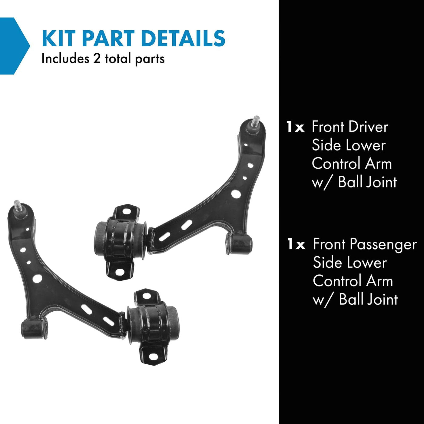 2 Piece Control Arm with Ball Joint SetKit Includes(1) Front Driver Side Lower Control Arm with Ball Joint(1) Front Passenger Side Lower Control Arm with Ball JointFitmentCompatible with: 2007-09 Ford Mustang Base Model Front Driver & Passenger Side LowerCompatible with: 2007-09 Ford Mustang GT Front Driver & Passenger Side LowerCompatible with: 2005-06 Ford Mustang Front Driver & Passenger Side LowerCompatible with: 2008-09 Ford Mustang Bullitt Front Driver & Passenger Side LowerCompatible with: 2010 Ford Mustang GT To 8/02/09 Production Date Front Driver & Passenger Side LowerCompatible with: 2010 Ford Mustang Base Model To 8/02/09 Production Date Front Driver & Passenger Side LowerProduct AttributesQuantity: 2 PieceReference NumbersACDelco: 45D3338, 45D3339Carquest: CA706B, CA707BCentric Parts: 623.61036, 623.61037DIY Solutions: SUS00695, SUS05490, SUS05491Dorman - OE Solutions: 520-389, 520-390Dorman - Premium: CB85323PR, CB85324PRDorman: 520-389, 520-390Falcon Steering Systems: FK80726, FK80727Ford: 4R3Z3078A, 4R3Z3079A, 6R3Z3078A, 6R3Z3078AA, 6R3Z3079A, 6R3Z3079AA, 7R3Z3078A, 7R3Z3079A, 7R3Z3079L, 9R3Z3078A, 9R3Z3078B, 9R3Z3079A, 9R3Z3079B, AR3Z3078B, AR3Z3078D, AR3Z3079B, AR3Z3079DHollander: 512-01455R, 512-01456LIngalls Engineering: CAK80726MAS Industries: CB85323, CB85323PR, CB85324, CB85324PRMcquay-Norris: FA4461, FA4462Mevotech: CMK80726, CMK80727, GK80726, GK80727, MK80726, MK80727MOOG Chassis Products: CK80726, CK80727, K80726, K80727, RK80726, RK80727Motorcraft: MCF2241NAPA Premium: 2605565, 2605566NAPA: 260-5565, 260-5566Precision Driveline: CB40072, CB40073Raybestos Chassis: 507-1338, 507-1339SYD: 1508050, 1508051