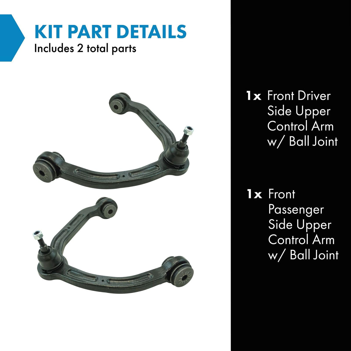 2 Piece Control Arm with Ball Joint SetKit Includes(1) Front Driver Side Upper Control Arm with Ball Joint(1) Front Passenger Side Upper Control Arm with Ball JointFitmentCompatible with: 2003-13 Chevrolet Express 3500 Van Front Driver & Passenger Side UpperCompatible with: 2014-20 Chevrolet Express 2500 Van V8 6.0L Front Driver & Passenger Side UpperCompatible with: 2014-20 Chevrolet Express 3500 Van V8 6.0L Front Driver & Passenger Side UpperCompatible with: 2006-13 Chevrolet Express 2500 Van Front Driver & Passenger Side UpperCompatible with: 2014-17 Chevrolet Express 2500 Van V8 4.8L Front Driver & Passenger Side UpperCompatible with: 2014-17 Chevrolet Express 3500 Van V8 4.8L Front Driver & Passenger Side UpperCompatible with: 2018-20 Chevrolet Express 2500 Van V6 4.3L Front Driver & Passenger Side UpperCompatible with: 2003-13 GMC Savana 3500 Van Front Driver & Passenger Side UpperCompatible with: 2018-20 Chevrolet Express 3500 Van V6 4.3L Front Driver & Passenger Side UpperCompatible with: 2014-19 GMC Savana 2500 Van V8 6.0L Front Driver & Passenger Side UpperCompatible with: 1999-00 Chevrolet Silverado 2500 Rear Wheel Drive Front Driver & Passenger Side UpperCompatible with: 2003-05 Chevrolet Express 2500 Van Rear Wheel Drive excluding 7300LB GVW Front Driver & Passenger Side UpperCompatible with: 2014-19 GMC Savana 3500 Van V8 6.0L Front Driver & Passenger Side UpperCompatible with: 2014-17 GMC Savana 2500 Van V8 4.8L Front Driver & Passenger Side UpperCompatible with: 2014-17 GMC Savana 3500 Van V8 4.8L Front Driver & Passenger Side UpperCompatible with: 2006-13 GMC Savana 2500 Van Front Driver & Passenger Side UpperCompatible with: 1999-00 GMC Sierra 2500 Rear Wheel Drive Front Driver & Passenger Side UpperCompatible with: 2018-19 GMC Savana 2500 Van V6 4.3L Front Driver & Passenger Side UpperCompatible with: 2003-05 GMC Savana 2500 Van Rear Wheel Drive excluding 7300LB GVW Front Driver & Passenger Side UpperCompatible with: 2018 GMC Savana 3500 Van V6 4.3L Front Driver & Passenger Side UpperCompatible with: 2017-19 Chevrolet Express 4500 Front Driver & Passenger Side UpperCompatible with: 2017-18 GMC Savana 4500 Front Driver & Passenger Side UpperCompatible with: 2014-16 GMC Savana 4500 V8 6.0L Front Driver & Passenger Side UpperCompatible with: 2014-16 Chevrolet Express 4500 V8 6.0L Front Driver & Passenger Side UpperCompatible with: 2009-13 GMC Savana 4500 Front Driver & Passenger Side UpperCompatible with: 2009-13 Chevrolet Express 4500 Front Driver & Passenger Side UpperProduct AttributesQuantity: 2 PieceReference NumbersACDelco: 45D1266, 45D1267Carquest: CA1215B, CA1216BDIY Solutions: SUS03901, SUS05294, SUS05295Dorman - OE Solutions: 521-975, 521-976Dorman - Premium: CB90497PR, CB90498PRDorman: 521-975, 521-976General Motors: 15049879, 15049880, 25793550, 25793553Hollander: 511-01048R, 511-01049LIngalls Engineering: CAK641505, CAK641506MAS Industries: CB90497, CB90497PR, CB90498, CB90498PRMcquay-Norris: FA3356, FA3357Mevotech Supreme: CMS50188, CMS50189Mevotech: CMS50188, CMS50189, GS50188, GS50189, MS50188, MS50189MOOG Chassis Products: RK641505, RK641506NAPA Premium: 2606362, 2606363NAPA: 2606362, 2606363Precision Driveline: CB50131, CB50132Raybestos Chassis: 502-1326SYD: 1503045, 1503046