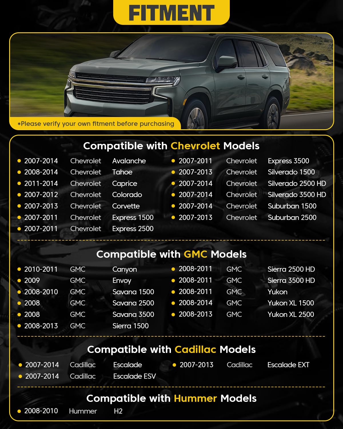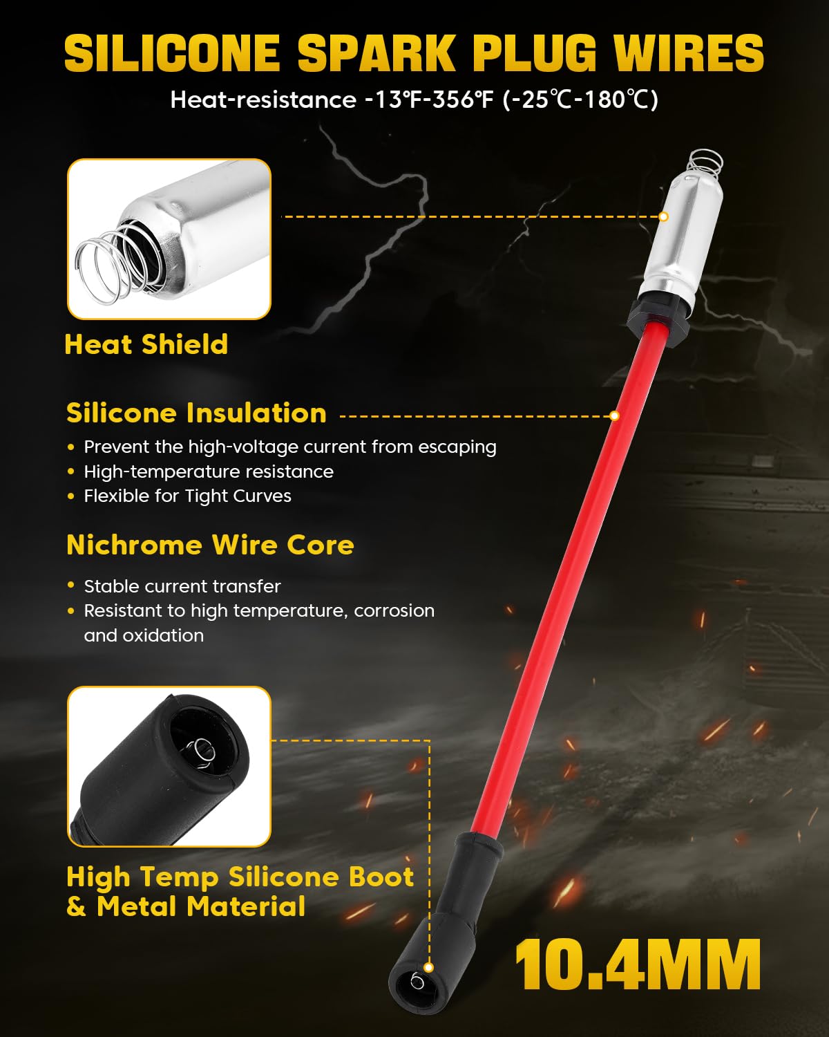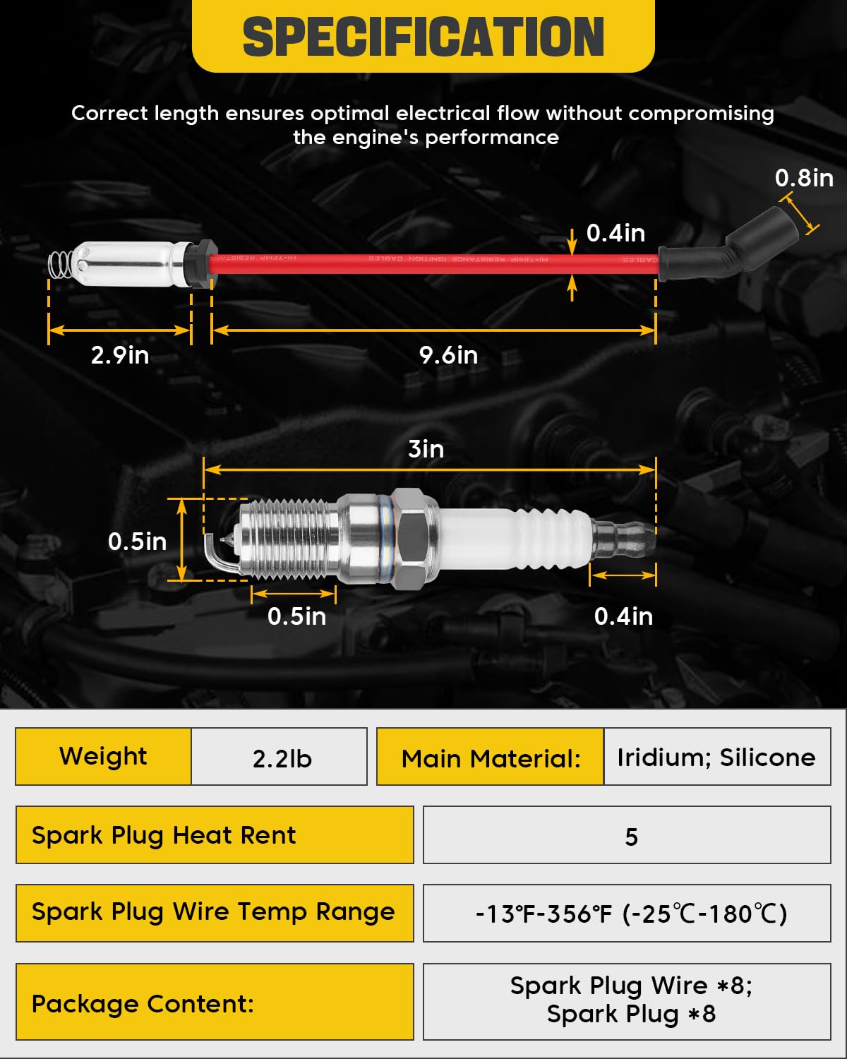 Upgrade Your Engine Performance with Our Iridium Spark Plugs & Spark Plug WiresEnsure your vehicle runs at its best with our premium 41-110 Iridium Spark Plugs and M8-48322 Spark Plug Wires. Perfectly compatible with Chevy Silverado 1500, Suburban, Tahoe, GMC Envoy, Sierra, Yukon, and more, these parts provide a high-performance solution for your 4.8L, 5.3L, or 6.0L V8 engine. Replacing part numbers 12621258, 12680072, and 7831, they deliver optimal ignition and fuel efficiency for a smoother, more reliable driving experience.
