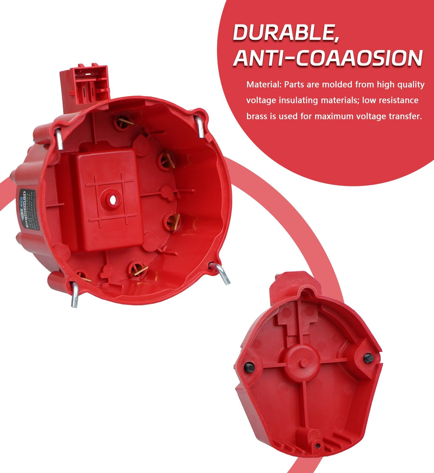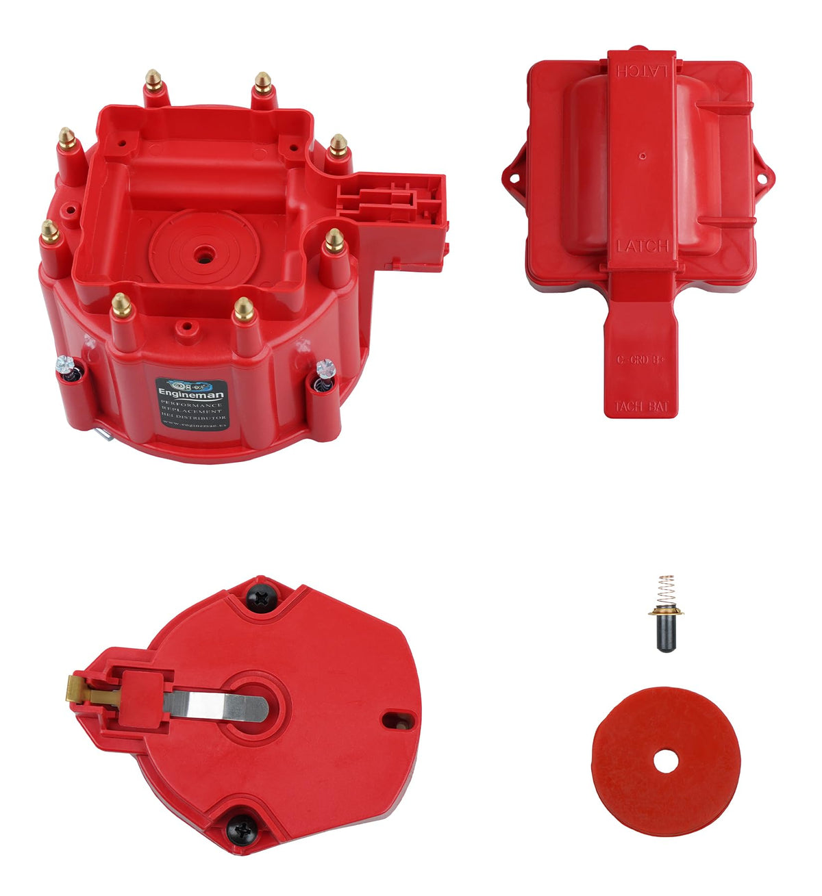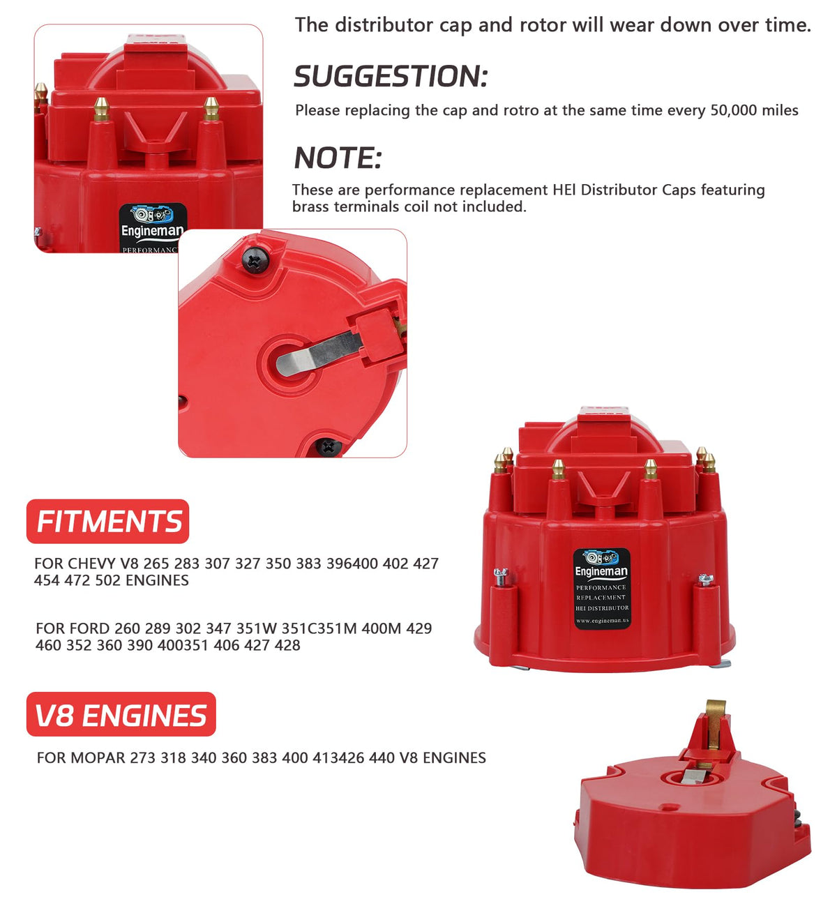 ENGINEMAN Red Male HEI Distributor Cap and Rotor Kit for SBC BBC 283 305 307 327 350 396 454 V8 Engines Performance Replacement