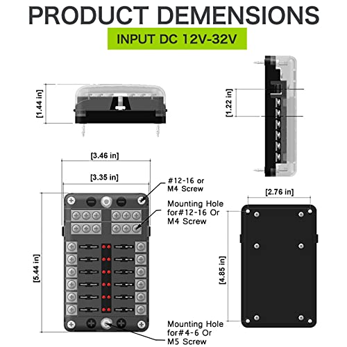 12 Volt Fuse Block, Marine Boat Fuse Block Waterproof 12 Way Automotive Fuse Box With 12 Ground Negative Busbar [100 Amp Max] [Led Indicator] For Car Rv Truck Golf Cart