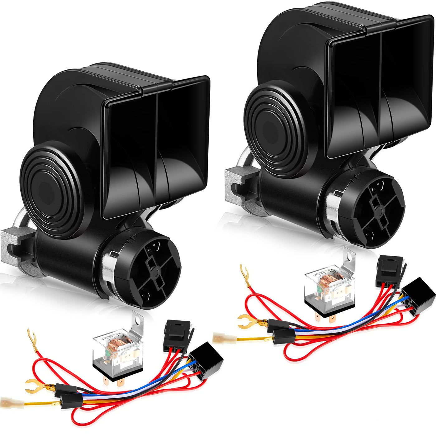2 Pack Train Horn For Car Truck 12V 150Db Loud Electric Snail Air Horn Kit With Relay Harness For Vehicles Motorcycle Boat Ship(Black)