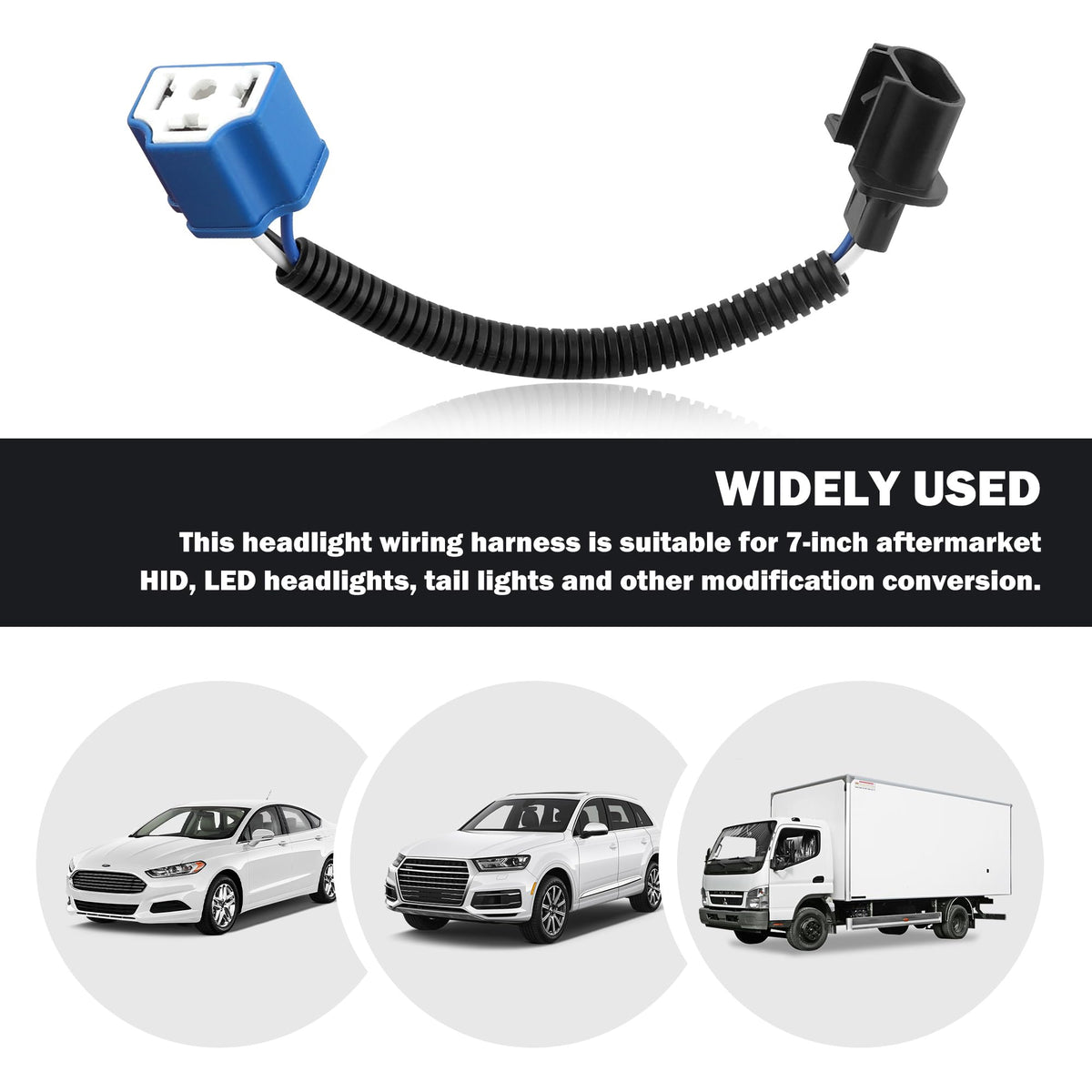 2Pcs 7 Inch Led Headlight Connector Pigtail,H13 To H4 Adapter Headlight Socket,Heat Resistant Headlight Wiring Harness Compatible With Jeep Wrangler Jk Tj Car Accessories