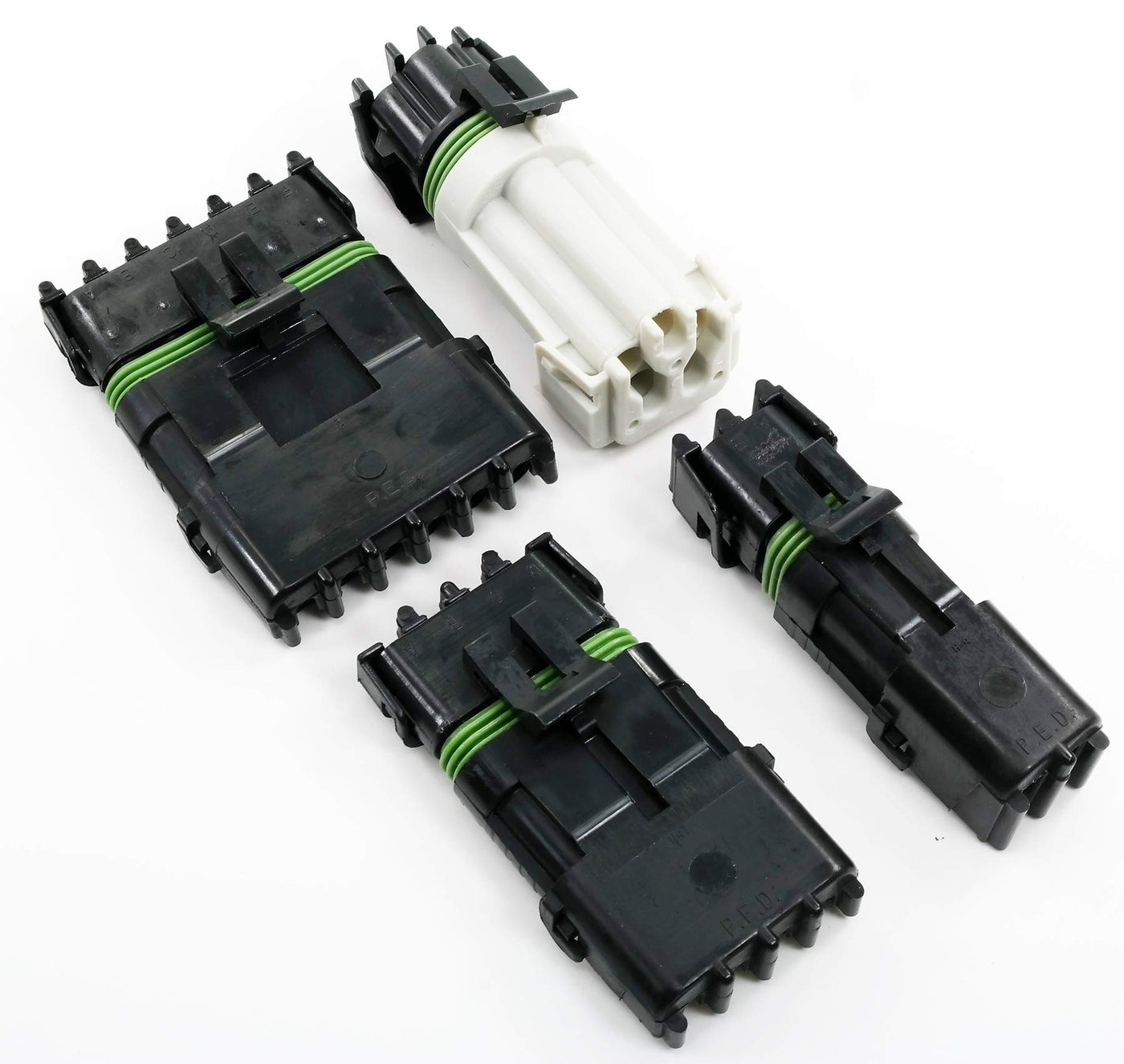 Q: Are these Weatherpack connectors environmentally sealed?A: Yes, the Weatherpack connectors are environmentally sealed, providing protection against moisture and contaminants, which enhances durability.