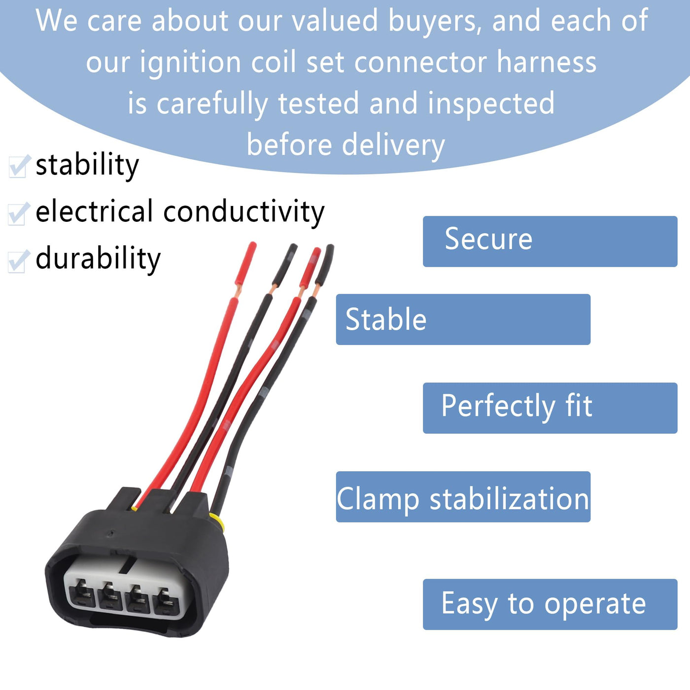 4Pcs Ignition Coil Connector - Standard 4 Ports Ignition Coil Wire - Compatible With L4 2.4L Toyota Camry Lexus Scion Pontiac Ignition Coil Pack Connector Harness