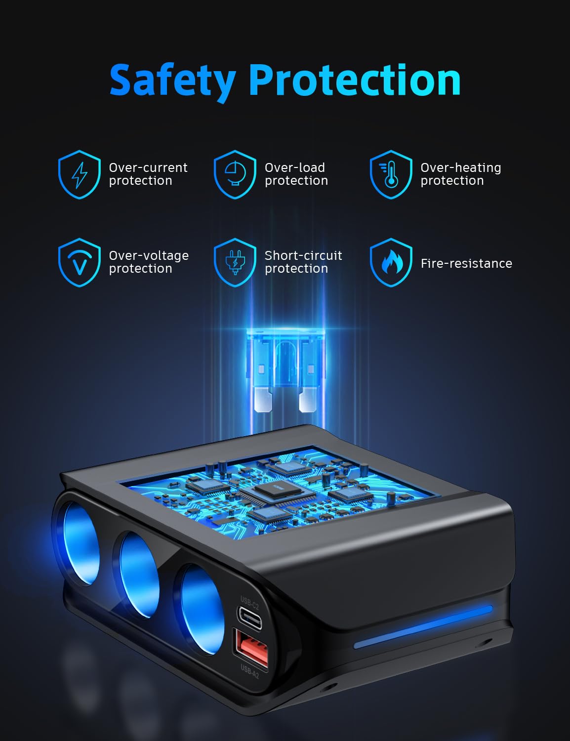 7 in 1 Cigarette Lighter Splitter, SONRU 180W (max 192W) 3-Socket Car Cigarette Lighter Adapter with Dual PD 36W/QC3.0 Fast Char