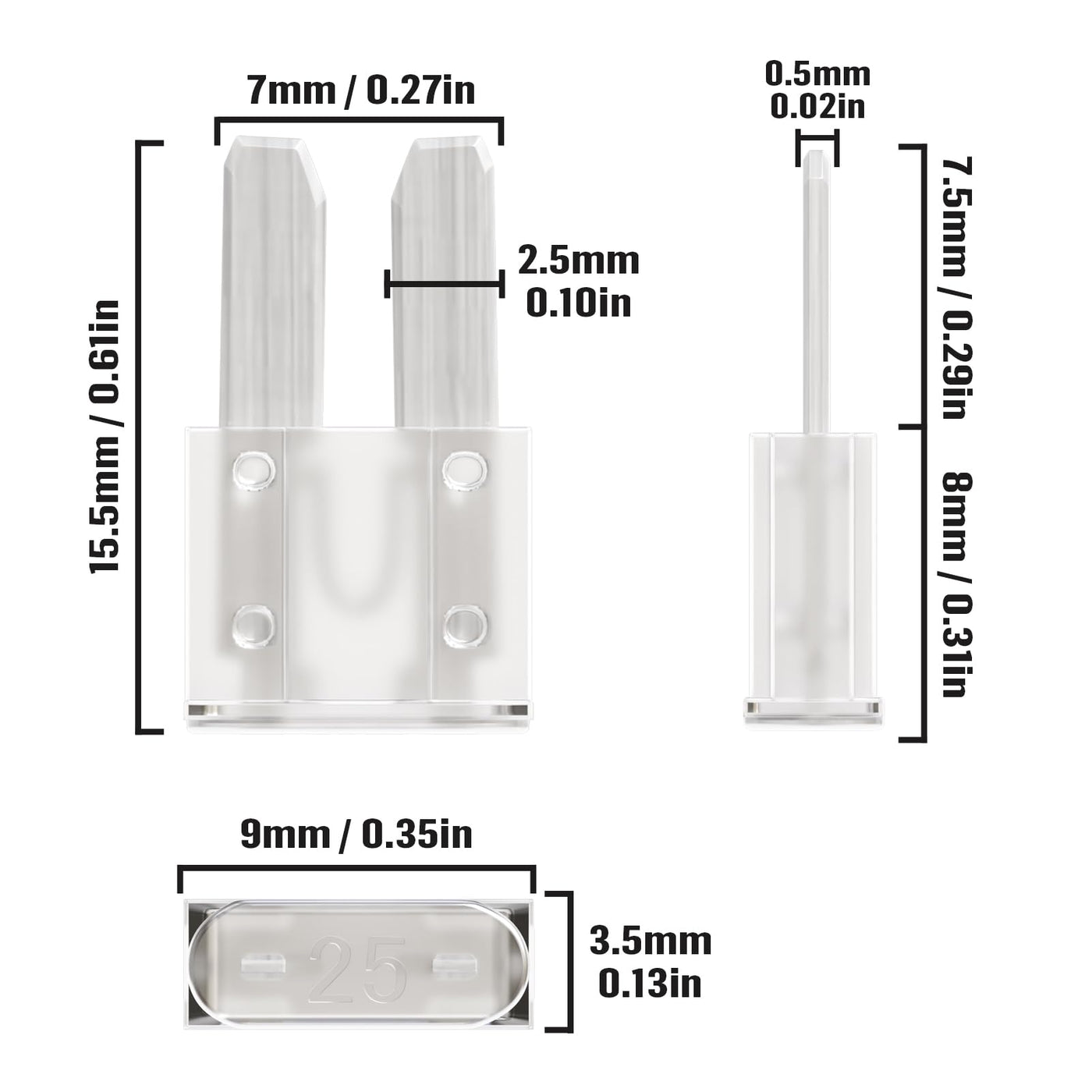 ALLECIN 25 Amp Micro2 Fuse 25Amp Micro 2 Car Fuses 25A Automotive APT ATR Blade Fusibles para Autos for RV Vehicle Truck Motorcy