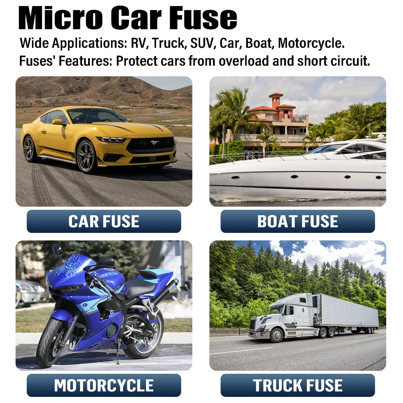 ALLECIN 4Amp Micro Car Blade Fuses suitable for automotive replacement fuses. Product Description Specifications: Model: Micro Fuses/Low Profile Mini Fuse Ampere Ratings: 4 A Voltage Ratings: 32 VDC Material: Zinc alloy Blade Group: APS, ATT Quantity: 50Pieces Simple Identification: Each fuse with a specific current rating is distinguished by its different color. The corresponding current ratings are engraved on the top. Easy to Store: The lower overall height makes micro fuse for more space and weight savings. Safety Protection: Mini Low Profile Fuse protect vehicles from wiring damage, electrical overload, and potential fires. Transparent housings make it easier to see when fuses blow. Wide Applications: RV, Truck, SUV, Car, Boat, Motorcycle. Note Car blade fuses are appropriate for low profile mini fuses, not standard (APR/ATC/ATO/ATS), mini (APM/ATM) or micro2 (APT/ATR) fuses. # Please confirm whether the fuse you need is a micro fuse before purchasing.