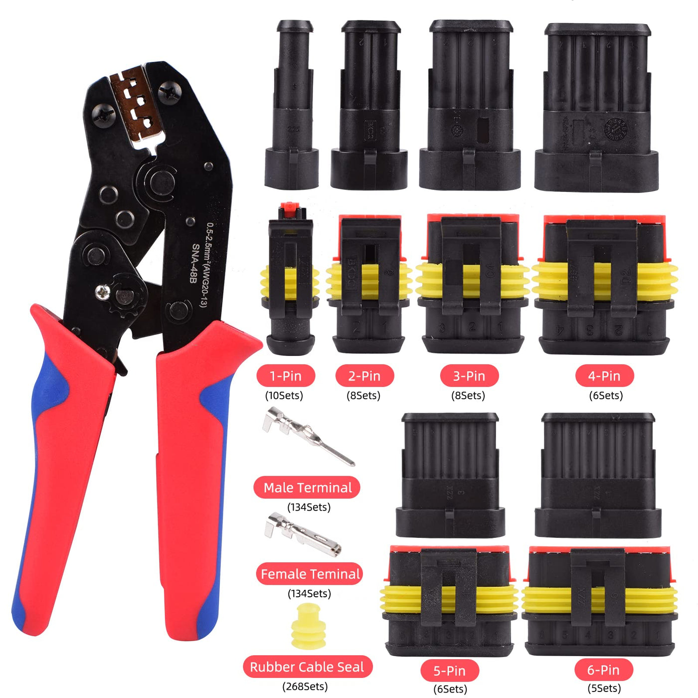 Q: How do I use the crimping tool included in the kit?A: To use the crimping tool, select the appropriate connector size, insert the wire into the connector, and place it in the crimping die. Squeeze the handles firmly to secure the connection. The ratcheting mechanism ensures a consistent crimp with less effort.