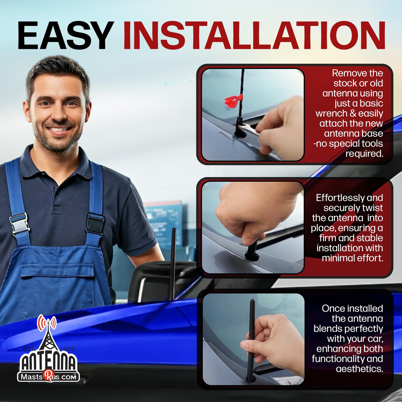 Q: How easy is it to install the AntennaMastsRus short antenna?A: Installation is extremely simple and takes just a few minutes. You can quickly upgrade the look of your GMC Sierra 1500 while enhancing its reception capabilities.