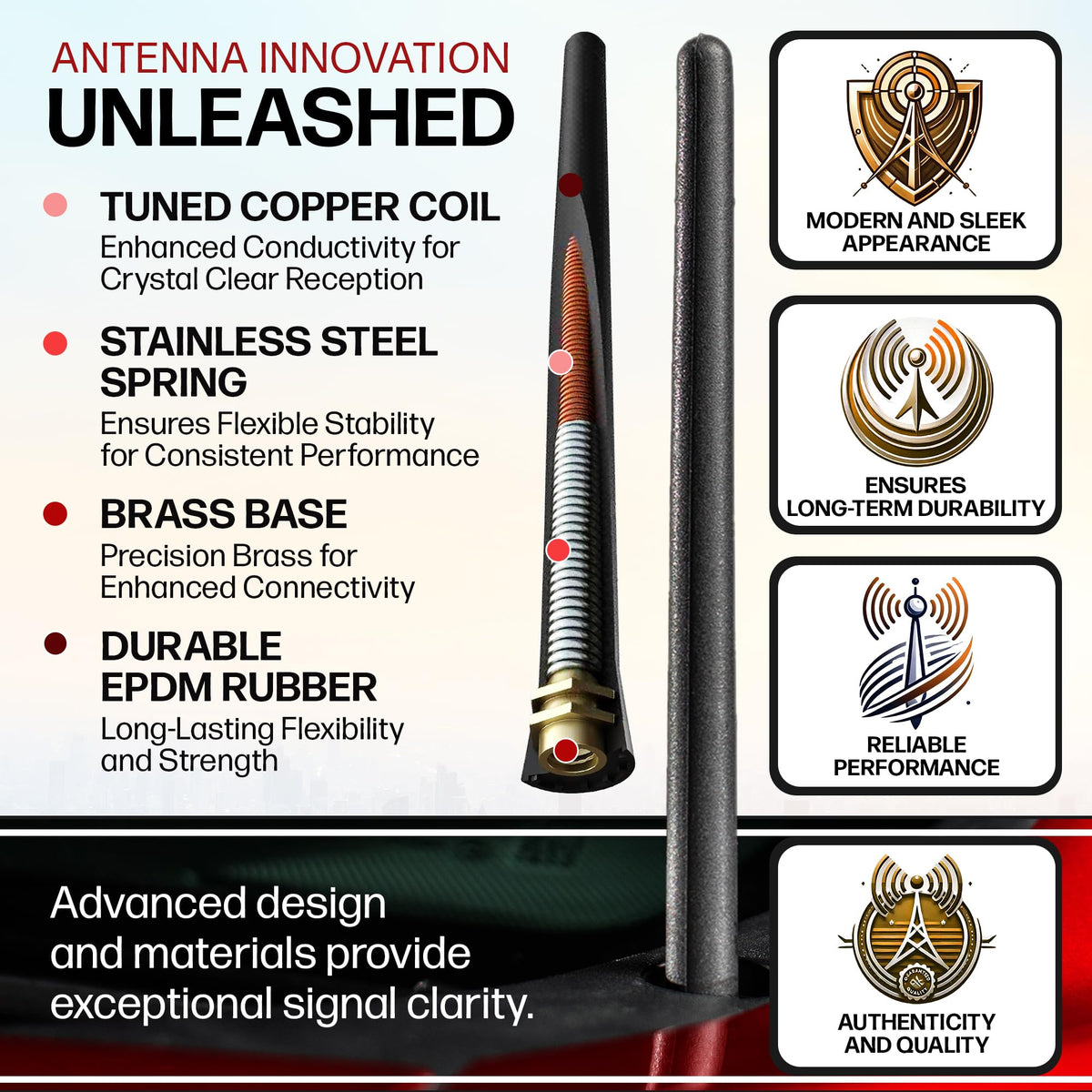 Q: Will this short antenna provide good radio reception?A: Absolutely! The 6 3/4" antenna features a highly conductive internal copper coil, which is up to 85% more conductive than aluminum or steel, allowing it to pull in more radio stations than many standard antennas.