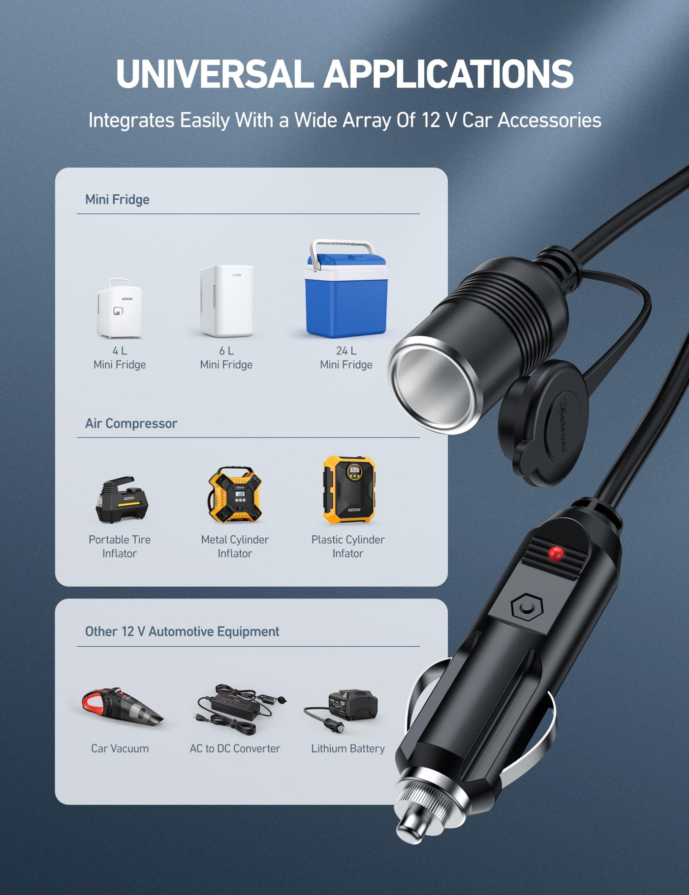 Greater Expectations The Astroai 12V/24V Extension Cord Just Makes Life Easier. Never Worry About Whether A Plug Is Going To Reach A Socket In Your Car Again. This Extension Cable Is The Ultimate Partner For Your Car Accessories. Air Compressors And Tire Inflators Can Reach The Furthest Wheels With Ease. Mini Fridges Can Tuck Away Until You Need Them Most, And Anyone Can Reach Their Phone While It'S Plugged In Charging.