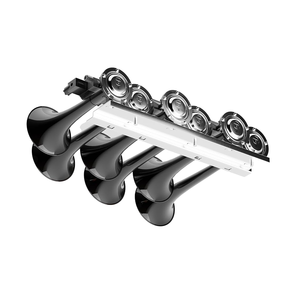 Basuri® Musical Air Horn | 12/24 Volt | 130 Db | Version (Baby Shark 2.0) 18 Super Loud Melodies (Sounds) 6 Pipe (Trumpets) With Turbo Controller For Bus, Truck And Heavy Duty Vehicles