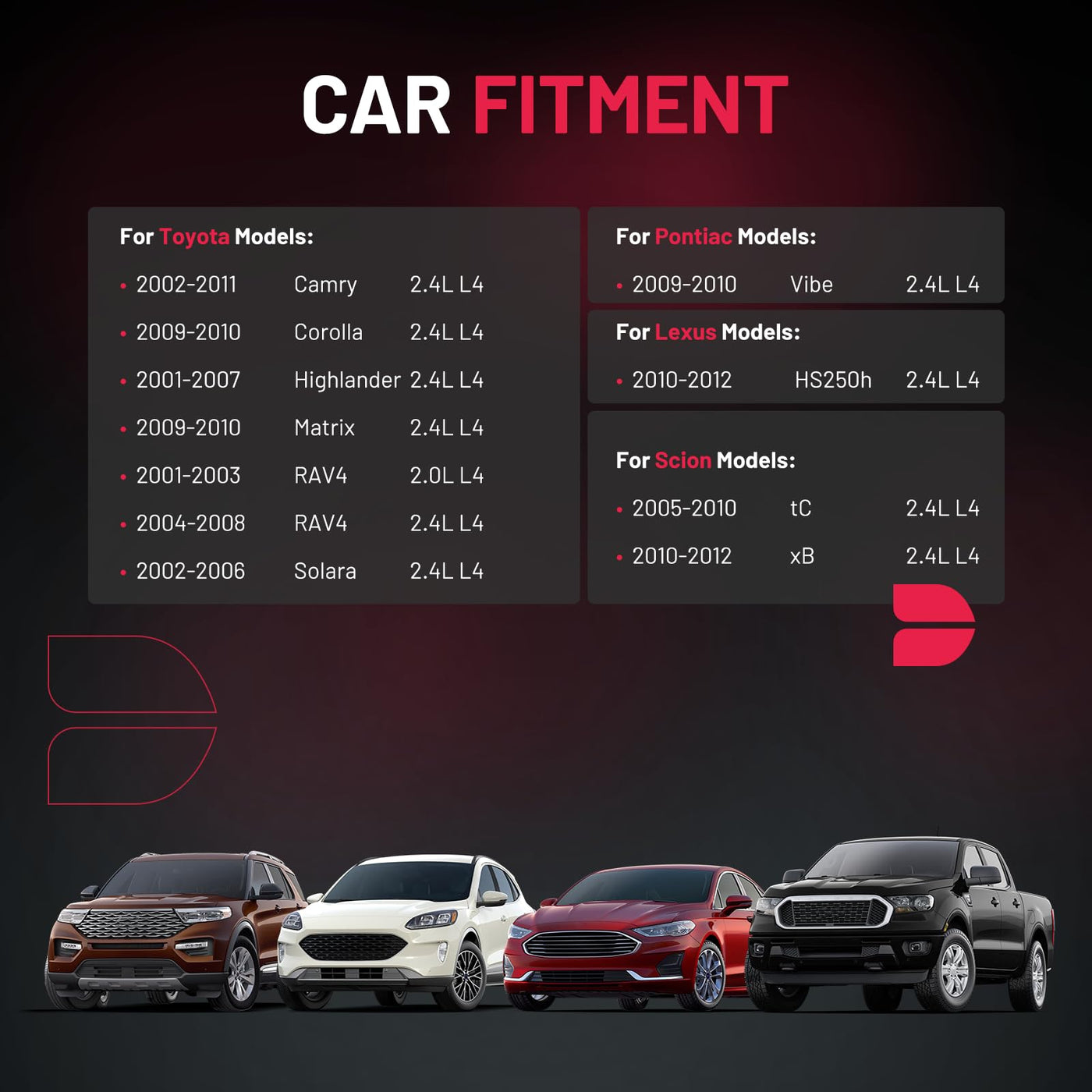Q: What vehicles are compatible with the BDFHYK Ignition Coil UF333 and Spark Plug 7092?A: The BDFHYK Ignition Coil UF333 and Spark Plug 7092 are compatible with various models including Lexus HS250h, Pontiac Vibe, Scion tC, xB, Toyota Camry, Corolla, Highlander, Matrix, RAV4, Solara, and VPG MV-1. Always verify fitment details from the product images or details page before purchasing.