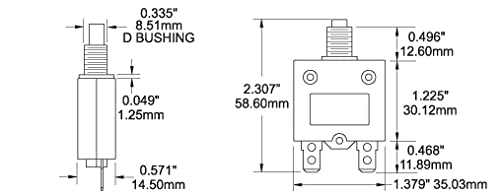Q: What dimensions does the Blue Sea Systems 2131 Circuit Breaker have?A: The Blue Sea Systems 2131 Circuit Breaker measures 4.5 inches in length and 2.76 inches in width, allowing for compact installation in high-density circuit protection configurations.
