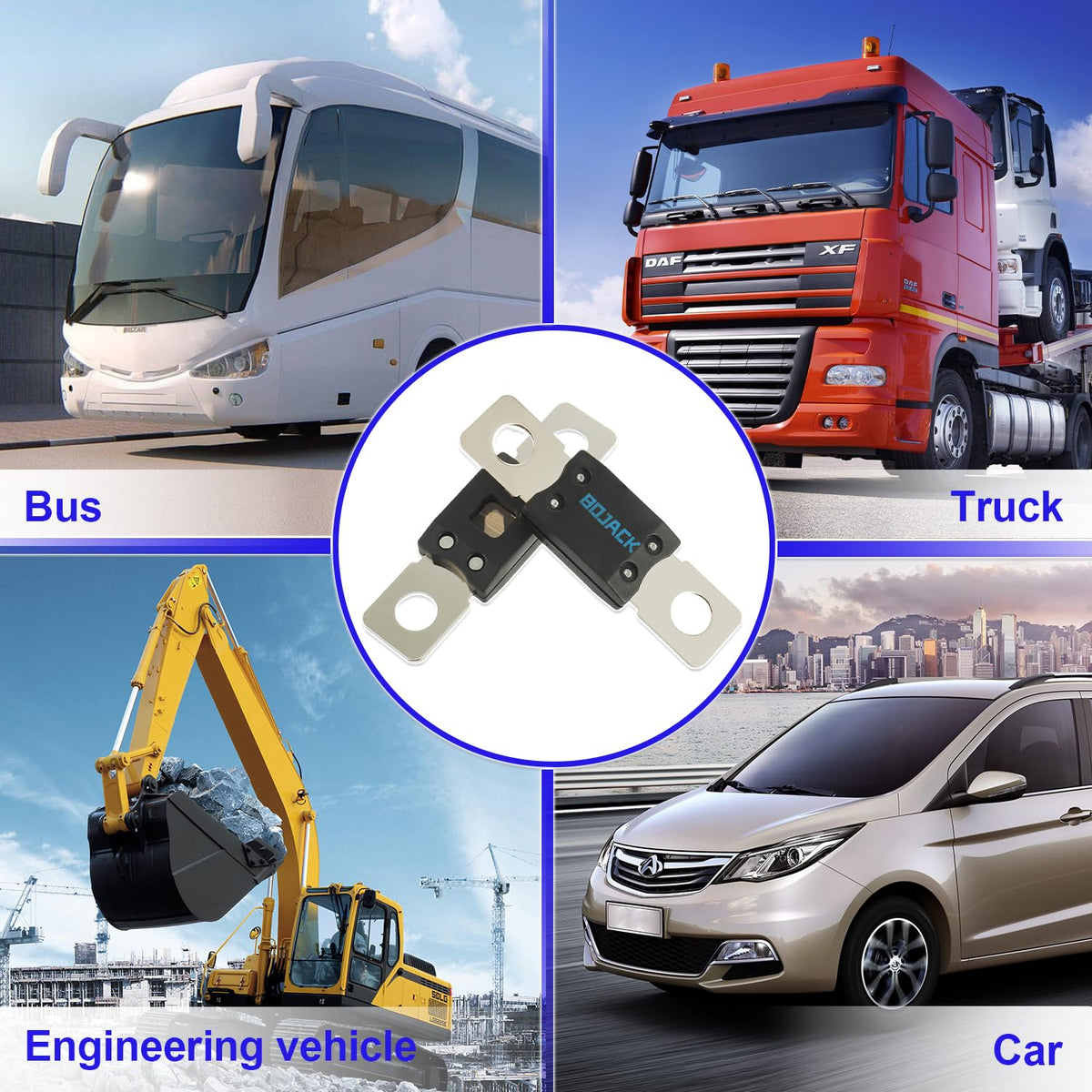 BOJACK MEGA High Current Fuse Bolt-on Fuse 40A Amp ANM Car Fuse Type: Mega fuse Current: 40A Voltage: 32V Temperature Range: -40C to +125C Standard: ISO 8820-5, RoHS Advantage: high contact stability, no deformation, high safety Match: can use with MEGA/ANM fuse holders Function & Application: Used for overload and short circuit protection in high current circuits.Suitable for use as a fuse on the battery cable of voltage converters and invertersor even charge controllers with high charging currents. Installation: ANM Fuse can be installed on battery and alternator protection applicationand other heavy gauge cables requiring ultra-high current protection. Package List: 2 x ANM Fuses 40A