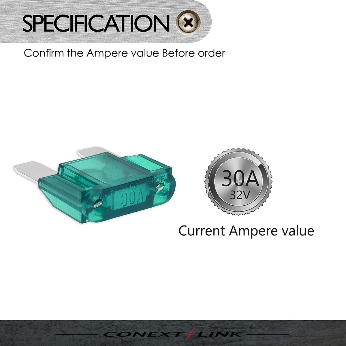 Q: What is the amperage rating of the Conext Link MAXI30-10 fuse?A: The Conext Link MAXI30-10 fuse has a rating of 30 Amps, making it suitable for various applications where a 30 Amp fuse is required.