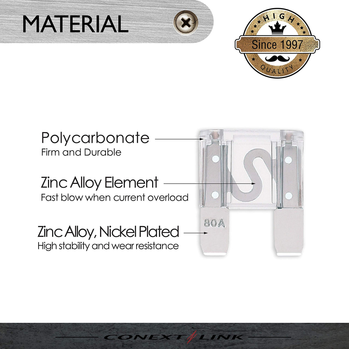Q: What materials are used in the construction of these fuses?A: The 80 Amp MAXI Fuse is constructed with a nickel-plated blade, which enhances conductivity and reduces corrosion, ensuring reliable performance over time.