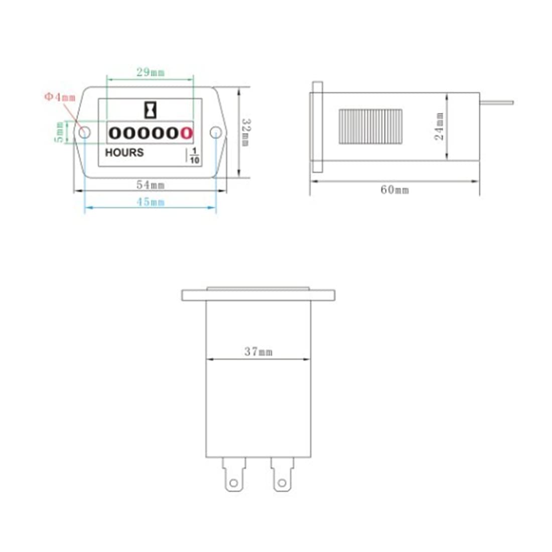 - Designed for easy installation, simply connect the positive and negative pins to the power source and you're ready to go. - This digital hour meter is suitable for use with DC 6-80 volt powered engines and boasts low power consumption. - With a completely sealed, dust-proof and damp-proof design, you can be confident that this hour meter will perform reliably in a range of environments. - Boasting high accuracy, the counter can record and display up to 99,999.9 hours of engine runtime with automatic roll over. Plus, the meter is built to last with a long life expectancy. - Ideal for use in a variety of applications, including boats, tractors, generators, and small engines, this hour meter is sure to become an indispensable part of your maintenance routine. Choose AIMILAR for a reliable, accurate, and easy-to-use hour meter solution.