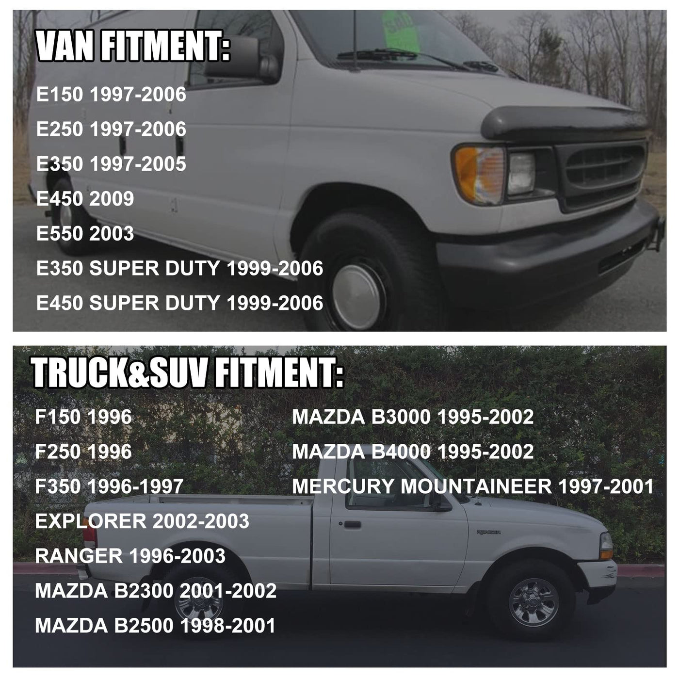 Q: What vehicles are compatible with the Door Lock Cylinder with Key Set?A: The Door Lock Cylinder with Key Set is compatible with various Ford models including E150 (1997-2006), E250 (1997-2006), E350 (1997-2005), E450 (2009), E550 (2003), F150 (1996), F250 (1996), F350 (1996-1997), Explorer (2002-2003), Ranger (1996-2003), and several Mazda and Mercury models.