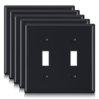 Elegrp 2-Gang Toggle Switch Wall Plates, Standard Size 4.53" H X 4.57" L Unbreakable Thermoplastic Faceplate Cover For Toggle Dimmer Light Switches, Ul Listed (5 Pack, Glossy Black)