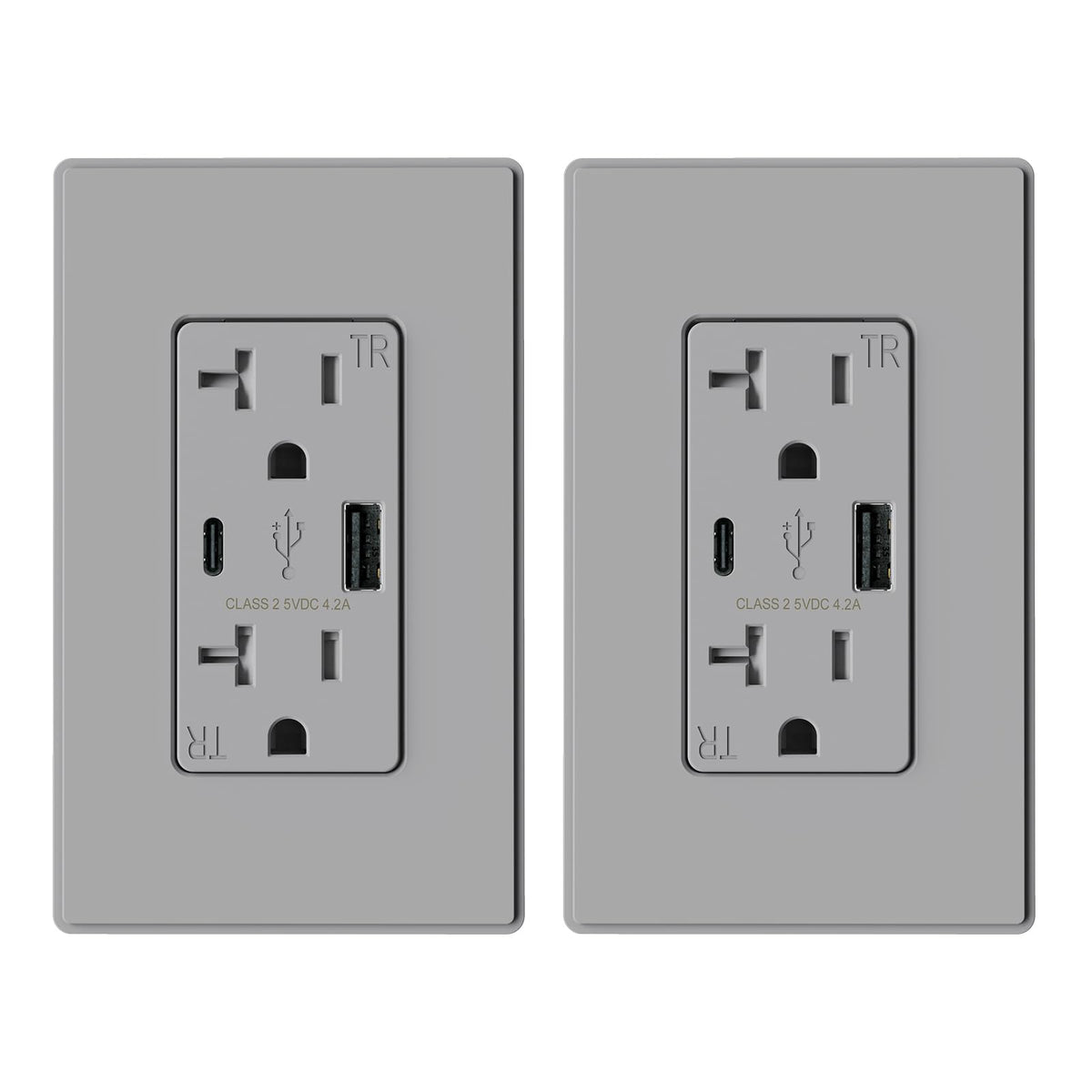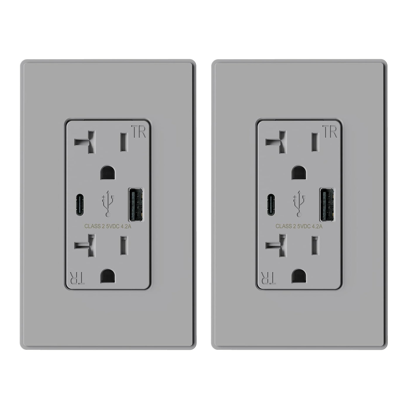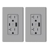 Elegrp Usb Charger Wall Outlet, Usb Receptacle With Usb A & Usb C Ports, 20 Amp Duplex Tamper Resistant Receptacle Plug Nema 5-20R, Wall Plate Included, Ul Listed, 2 Pack, Matte Grey