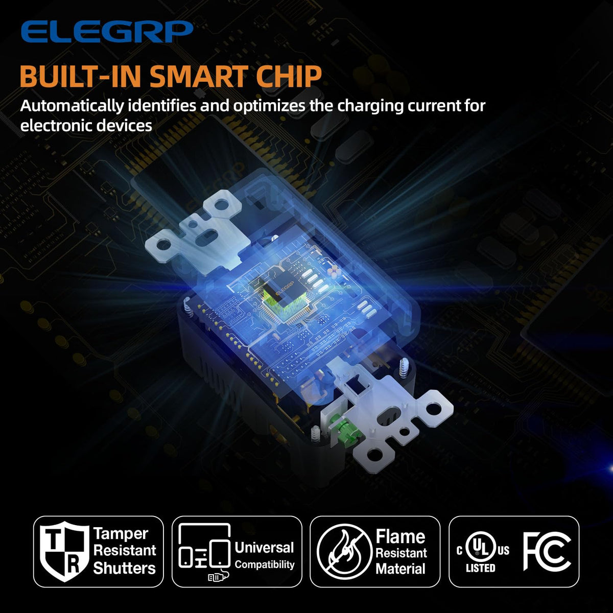 Q: Is the ELEGRP USB Charger Wall Outlet safe for children?A: Yes, it comes with tamper-resistant shutters that prevent children from inserting foreign objects into the outlets, making it a safe choice for family homes.