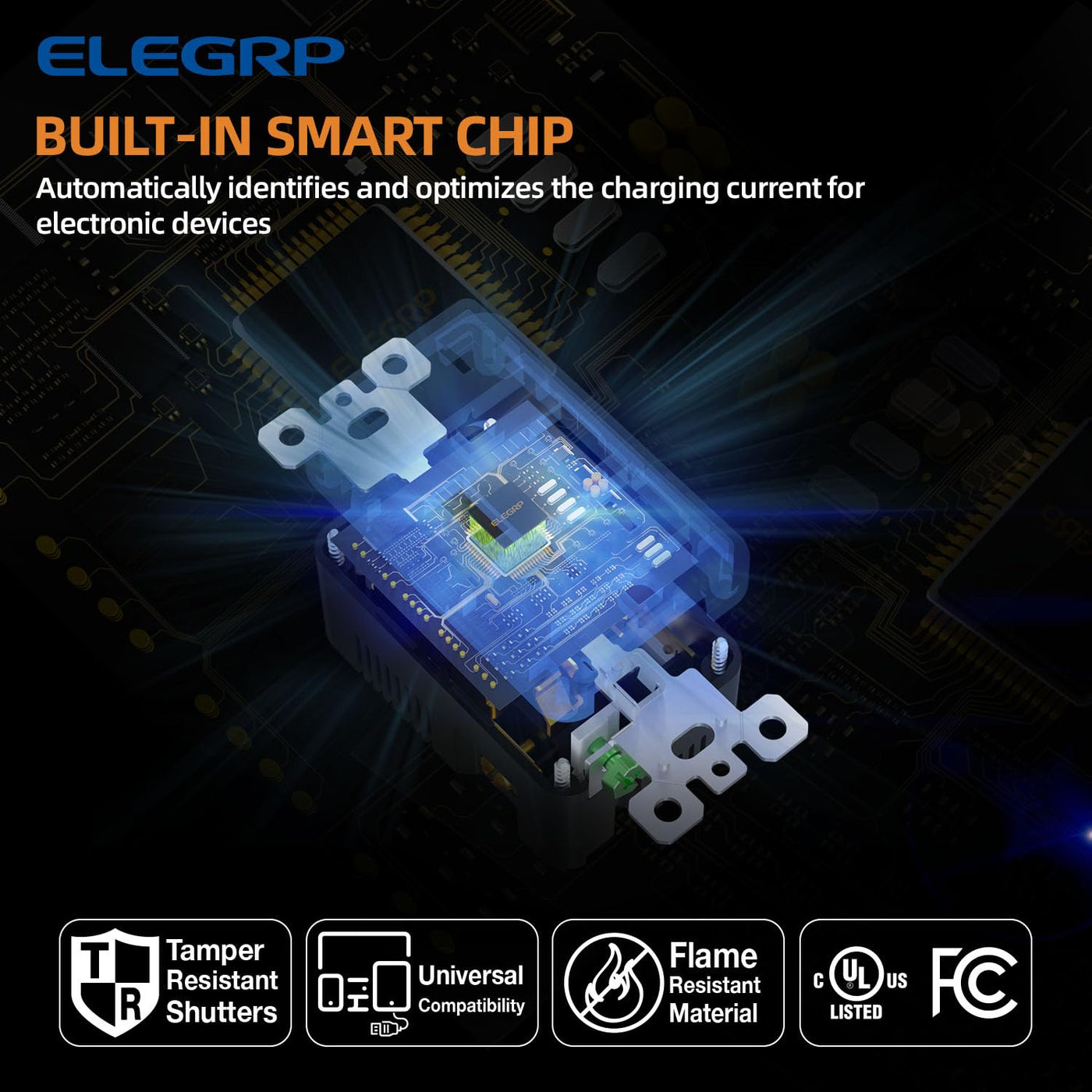 Q: Is the ELEGRP USB Charger Wall Outlet safe for children?A: Yes, the outlet is designed with tamper-resistant shutters that prevent children from inserting objects into the outlets, enhancing safety in households with young children.