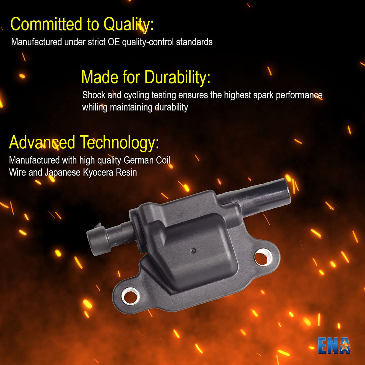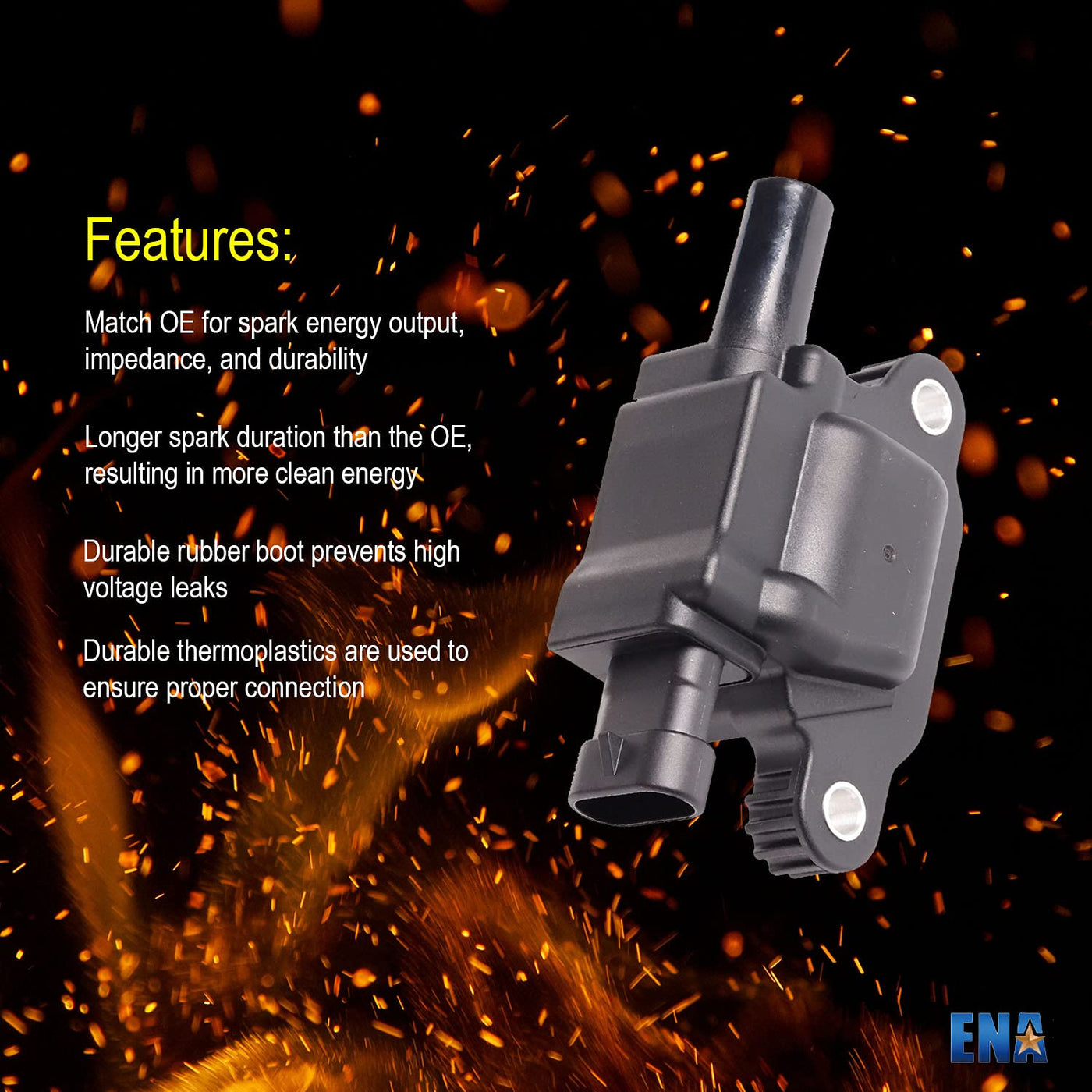 Q: What benefits do the ENA ignition coils and spark plugs provide?A: The ENA ignition coils and spark plugs enhance engine performance by delivering a consistent spark, improving fuel efficiency, and reducing the likelihood of misfires, leading to a smoother driving experience.