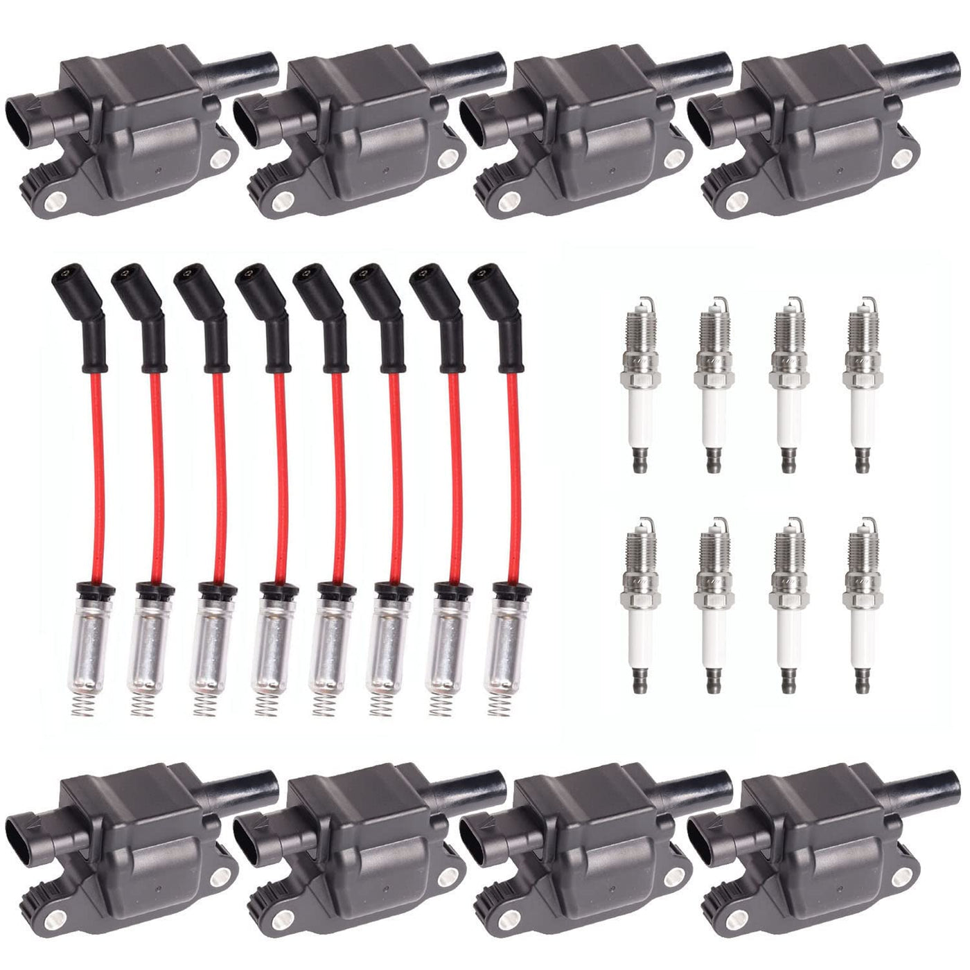 Ena 8 Pack Uf413 Ignition Coil 41962 Spark Plug And 48322R Wires Set For 5.3 6.0 6.2 Compatible With Buick Cadillac Chevrolet Gmc Hummer Escalade Express Savana 2500 5.3L 6.2L 6.0L 4.8L For 12570616