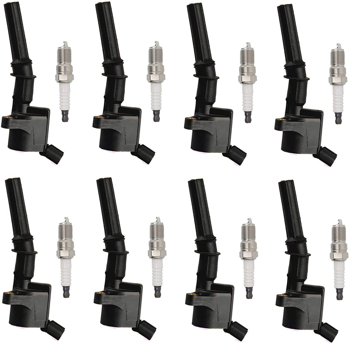 Ena Dg508 Ignition Coils And Sp479 Spark Plugs For 5.4 V8 Compatible With Lincoln Ford Mustang Econoline Excursion Expedition Pickup E150 E250 E350 F150 F250 4.6L 5.4L 6.8L Replacement For Fd503 Sp479