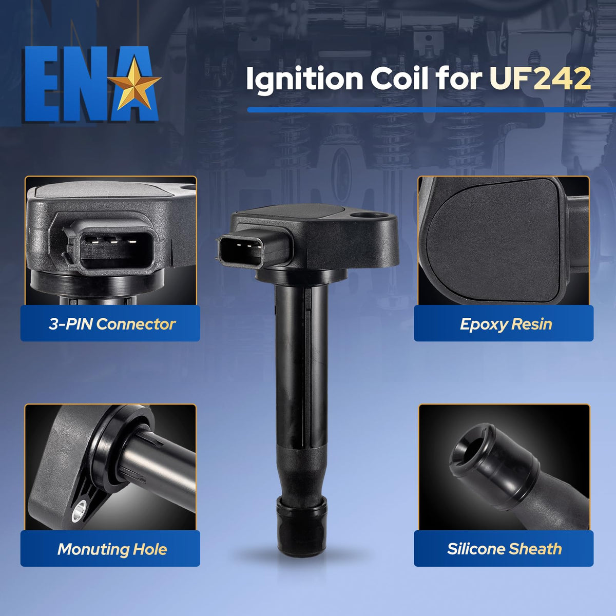 Ena Ignition Coil Uf242 & Spark Plug 4503 Compatible With Honda Accord 3.0L 2000-2002 Odyssey 1999-2010 3.5L Acura Cl 2001-2003