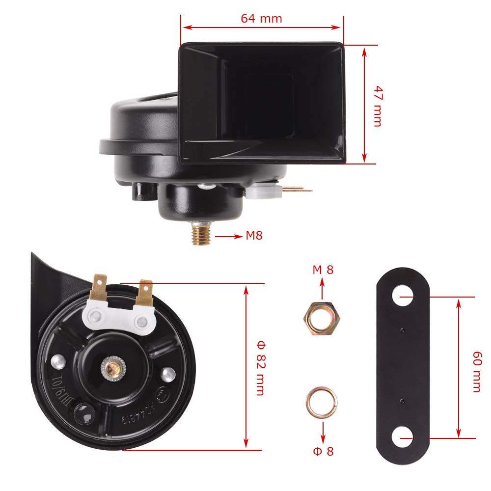 Evermotor Car Horn 12V Loud Air Horn Universal Signal Speaker For Motorcycle,Truck,Golf Cart,Moped,Scooter,Atv 118 Db Snail Horns With E-Mark
