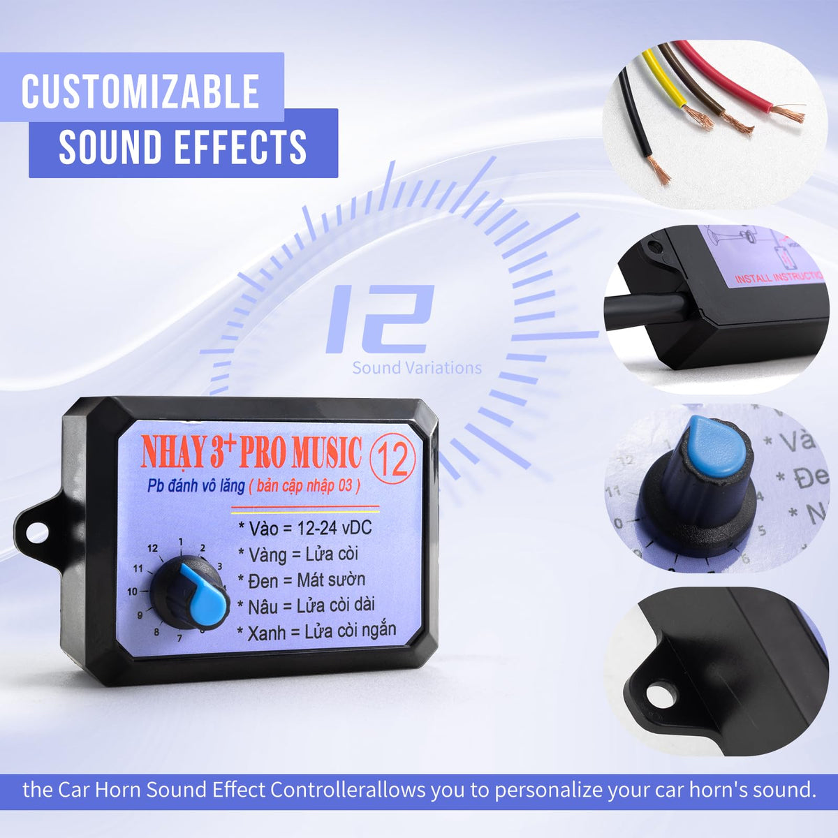 FARBIN Motorcycle Horn Loud Car Horn with 12-Tone Controller 12V Motorcycle Horns High/Low Tone Metal Twin Horns Kit with Protec