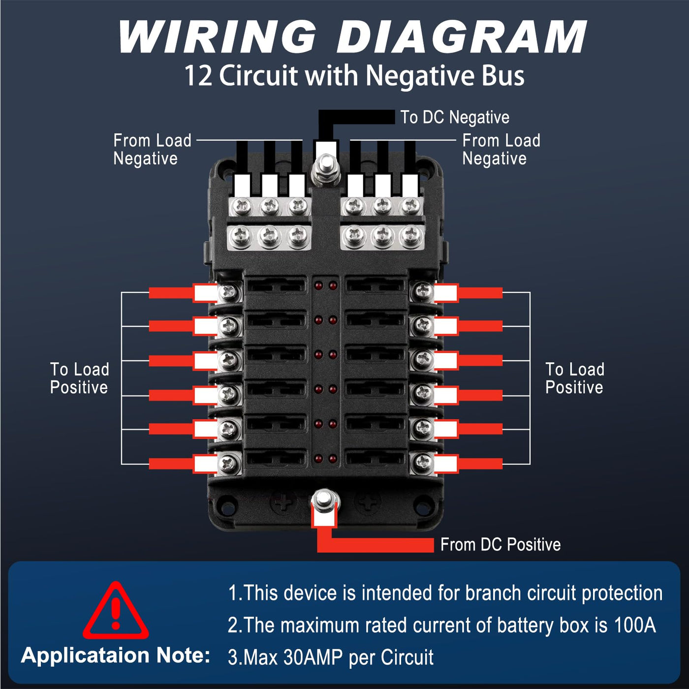 The Fuse Block Is A Crucial Component In Any Electrical System, Providing Effective Electrical Protection And Safety. Introducing Our Revolutionary Fuse Box: Safe, Reliable, And Easy To Assemble. Constructed With High-Quality Materials, It Offers Efficient Protection Against Overload And Short Circuits. With A 12-Circuit Wiring Design, It Ensures Organized Circuits. The Led Indicator Light Displays Faults In Real-Time, Enabling Quick Issue Resolution. Upgrade Your Circuit Protection By Choosing Our Marine Fuse Block And Give Your Electronic Devices Peace Of Mind And Reliability. 12V Fuse Block With Led Warning Indicator; Pbt Body, Pc Waterproof And Dustproof Cover, Nickel-Plated Copper Terminal Connectors. 2. When The Red Led Light Is Illuminated, It Indicates That The Fuse Has Blown. 3. Each Circuit Has A Maximum Current Of 30 Amps, And The Maximum Current For The Entire Panel Is 100 Amps. 4. Input Voltage: 12V-24V Dc, Maximum Input Voltage: 32V. 5. Locking Protective Cover For Dust And Splash Protection. 6. Suitable For Installation In Cars, Suvs, Rvs, Buses, Yachts, Boats, And More. Note: Even If There Is No Fuse, You May Still Measure Voltage In The Circuit. This Is Because The Fuse Box Has Its Own Photoelectric Circuit, Which Has Resistance And May Display Some Voltage. Therefore, If You Are Highly Sensitive To Power Issues, Please Be Aware That This Is A Normal Situation And There Is No Need To Worry. Thank You For Your Understanding.